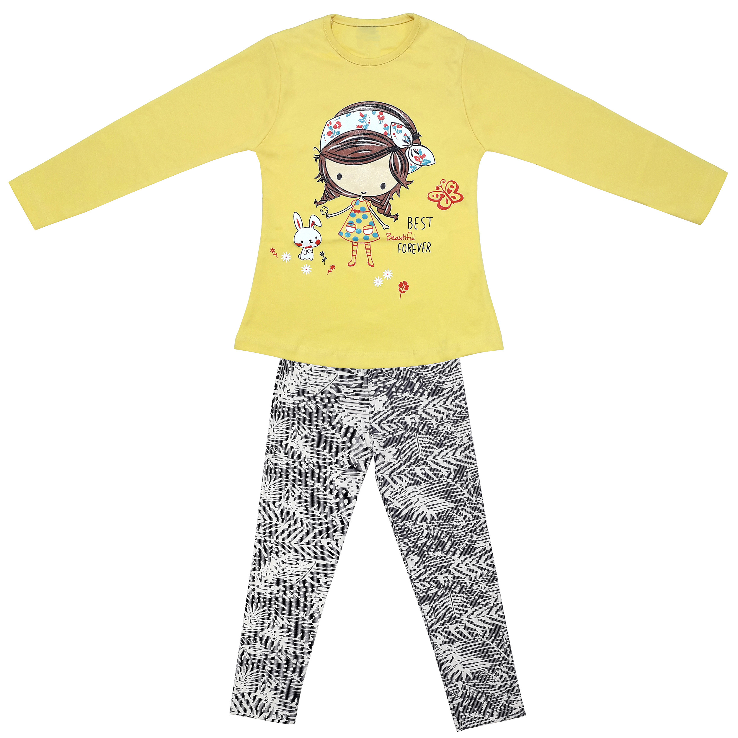 ست تی شرت و شلوار دخترانه طرح دختر و خرگوش کد 3073