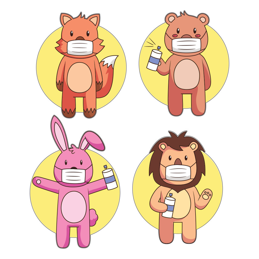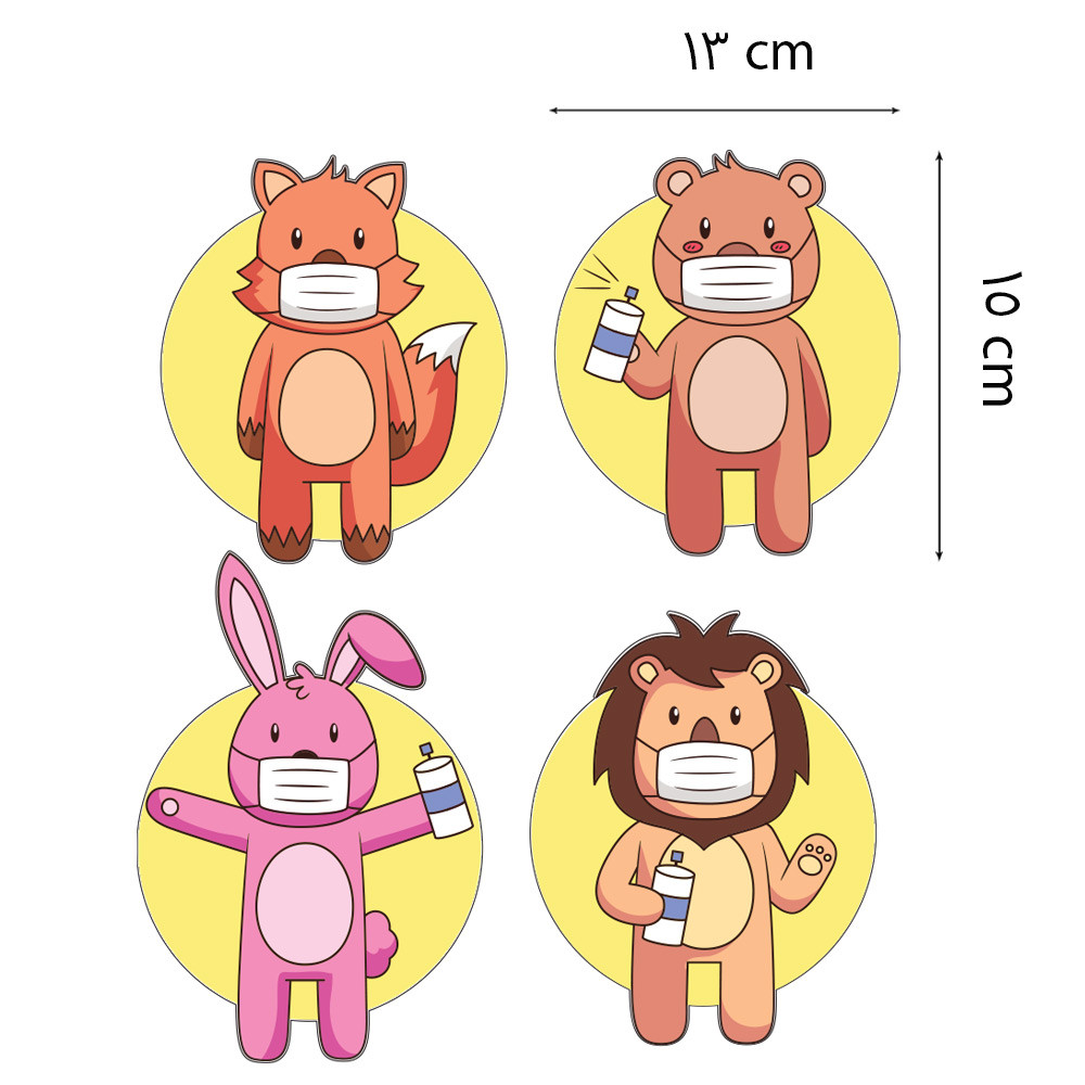 استیکر دیواری کودک طرح حیوانات کد 02 مجموعه 4 عددی