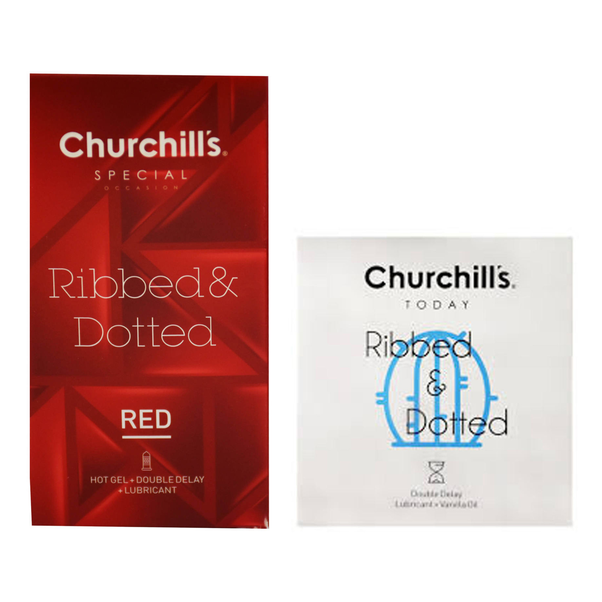 کاندوم چرچیلز مدل خاردار و شیاردار بسته 12 عددی به همراه کاندوم چرچیلز مدل شیاردار و خاردار بسته 3 عددی