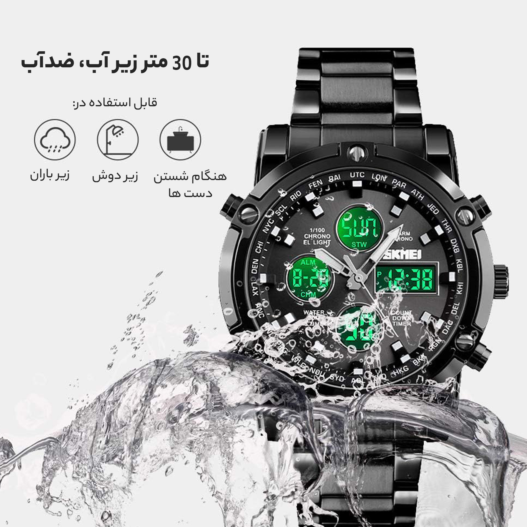 - نوع صفحه نمایش ساعتترکیب آنالوگ و دیجیتال