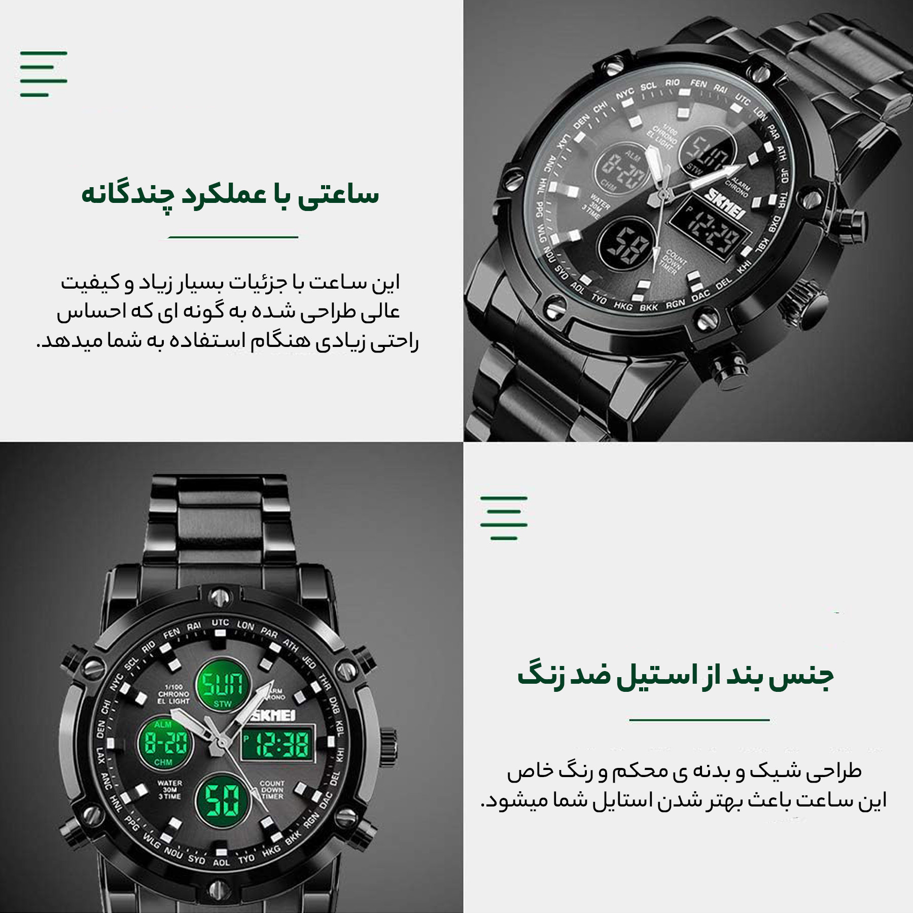 - قابلیتهای تخصصی ساعتنمایش 24 ساعته