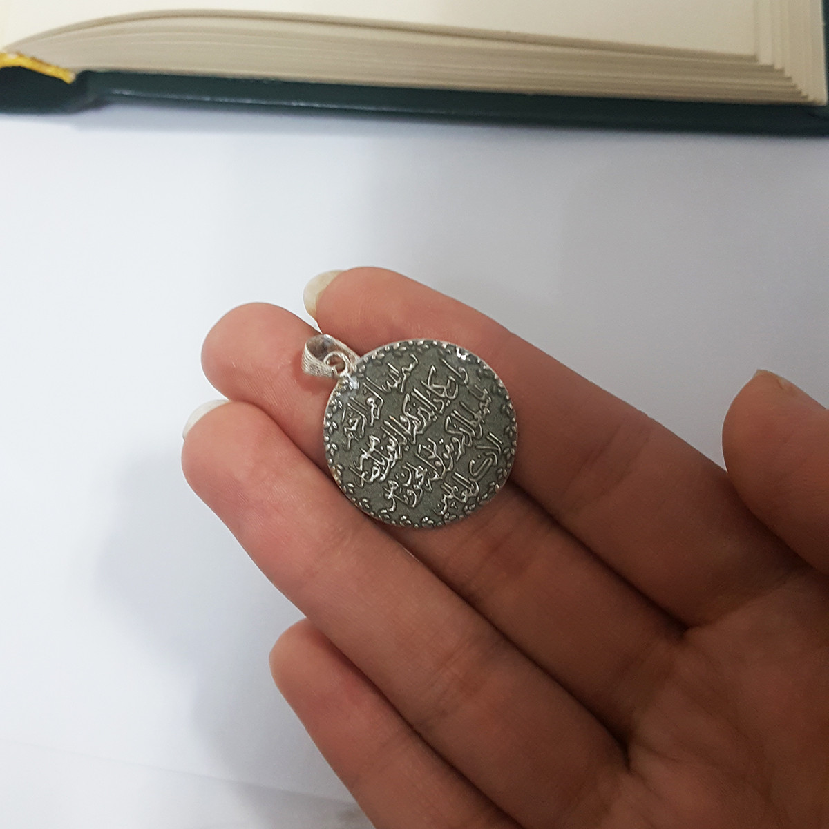- سایر توضیحاتآویز نقره آیه ی مبارکه ی و ان یکاد برای محافظت در برابر چشم زخم و انرژی منفی، قابل استفاده برای تمامی سنین