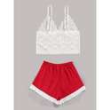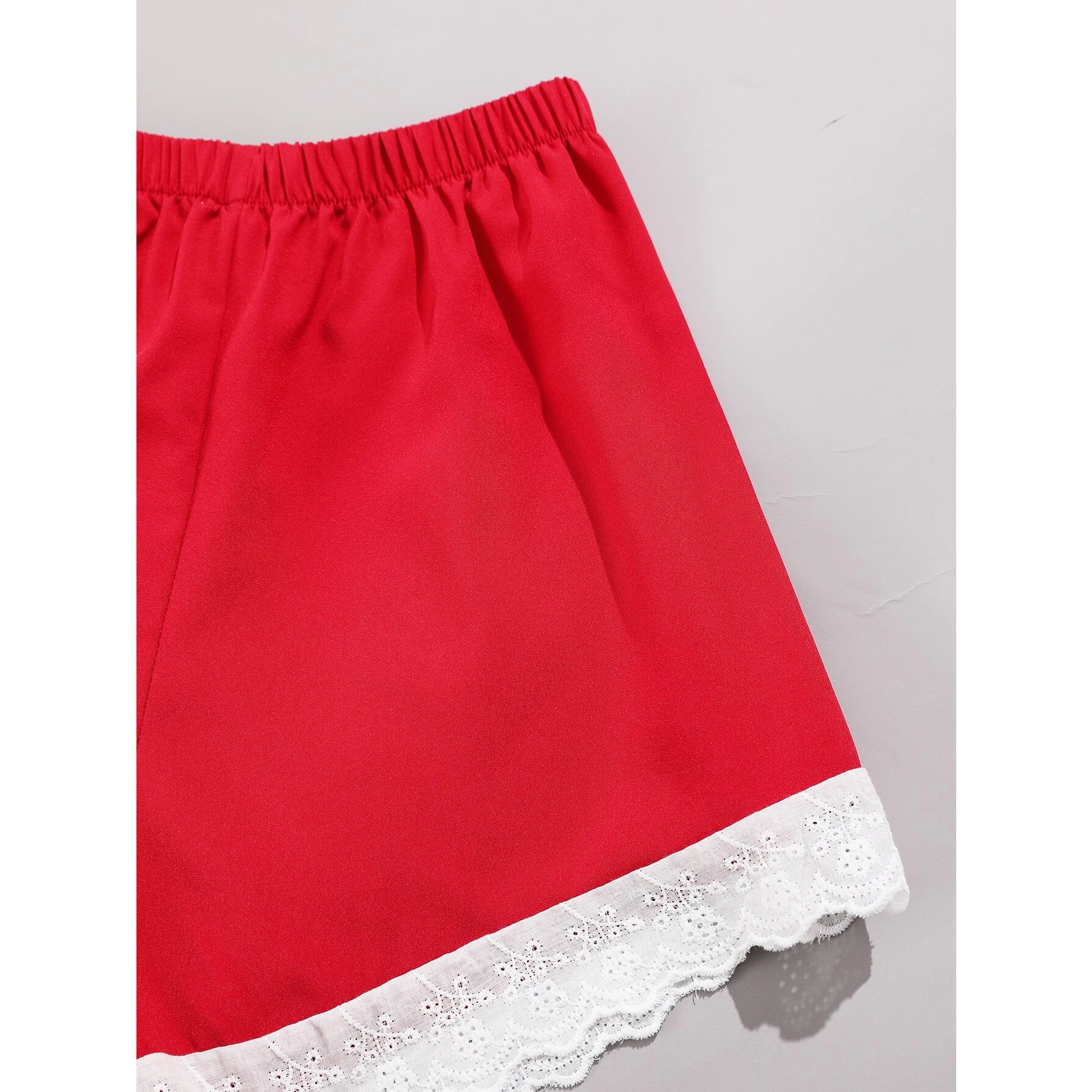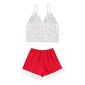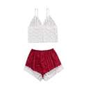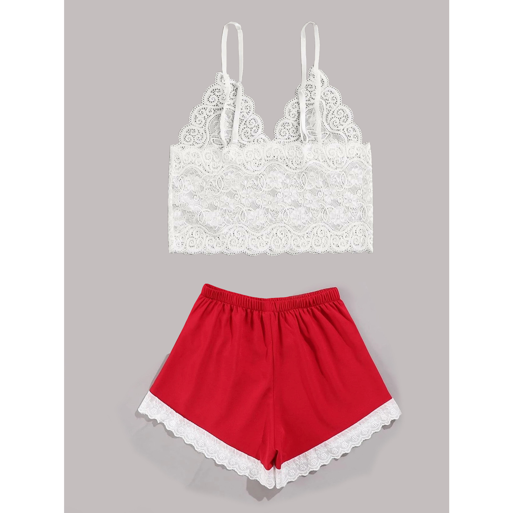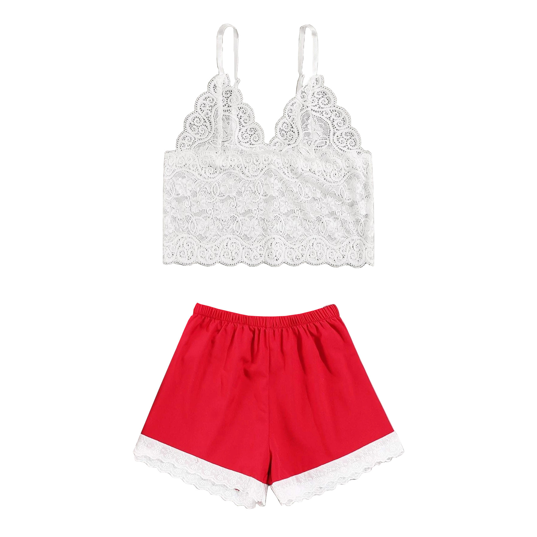-ست لباس خواب زنانه شامل شلوارک ساتن و نیم تنه گیپور - نگهداری-شستشو با دمای 30 درجه یا کمتر