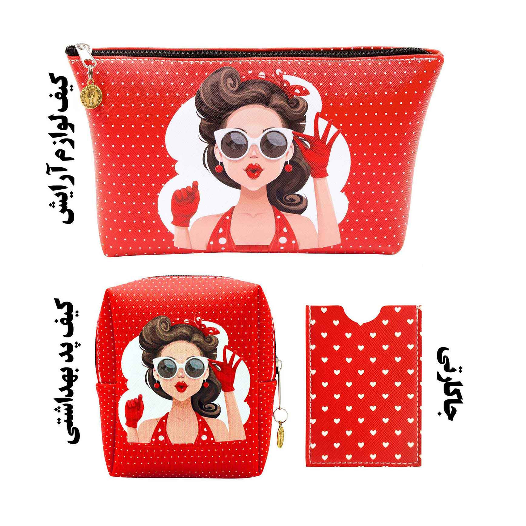 - جزئیاتست هدیه شامل کیف لوازم آرایش - کیف پد بهداشتی بانوان - جاکارتی. ابعاد کیف لوازم آرایش :23x13x4 ابعاد کیف پد بهداشتی: 12x12x5 ( قابلیت نگهداری میانگین 5 عدد پد بهداشتی) ابعاد جاکارتی: 9x6.5