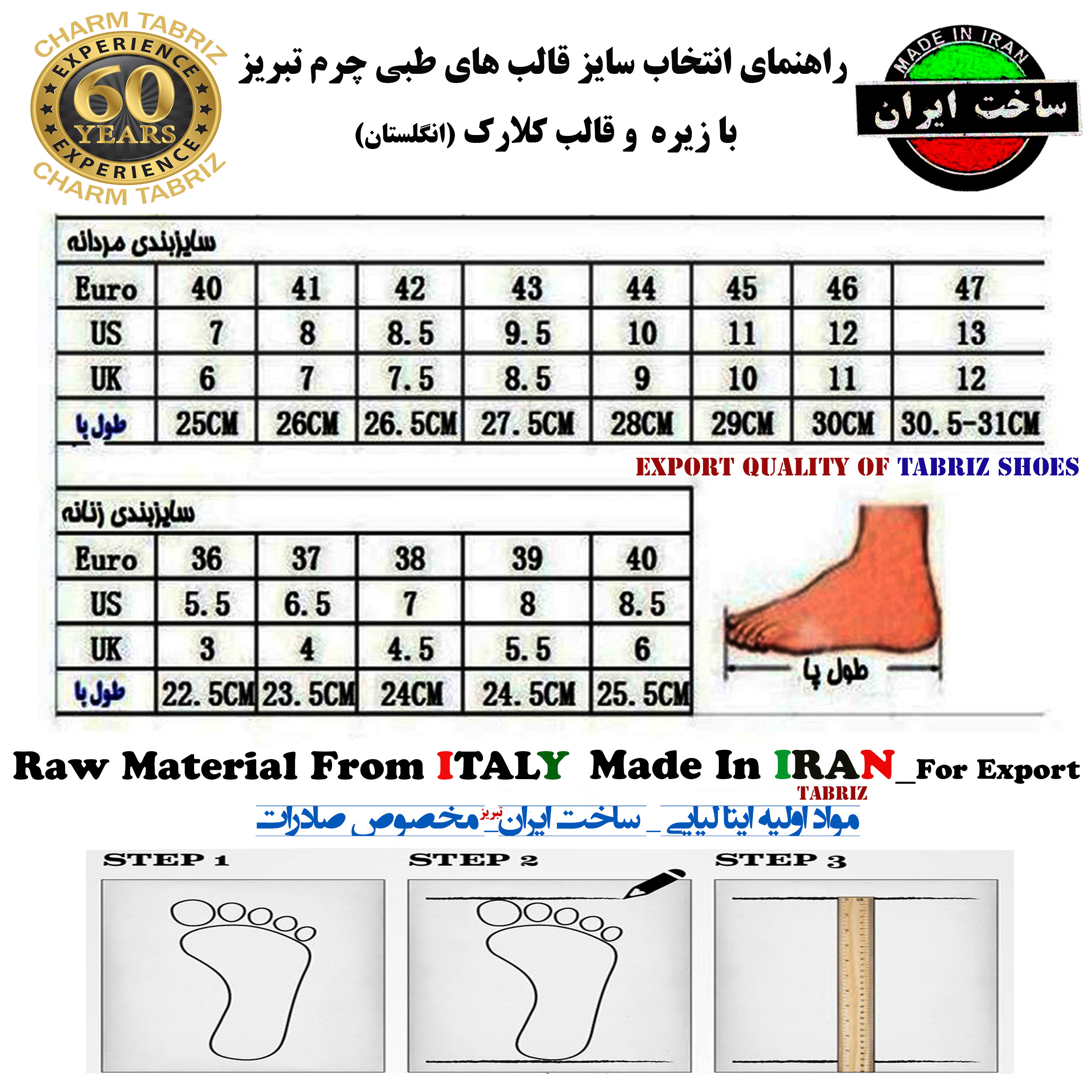 - جزئیاتقالب استاندارد طرح Clarks و کاملا طبی جهت کاهش فشارهای وارده و رفع خستگی