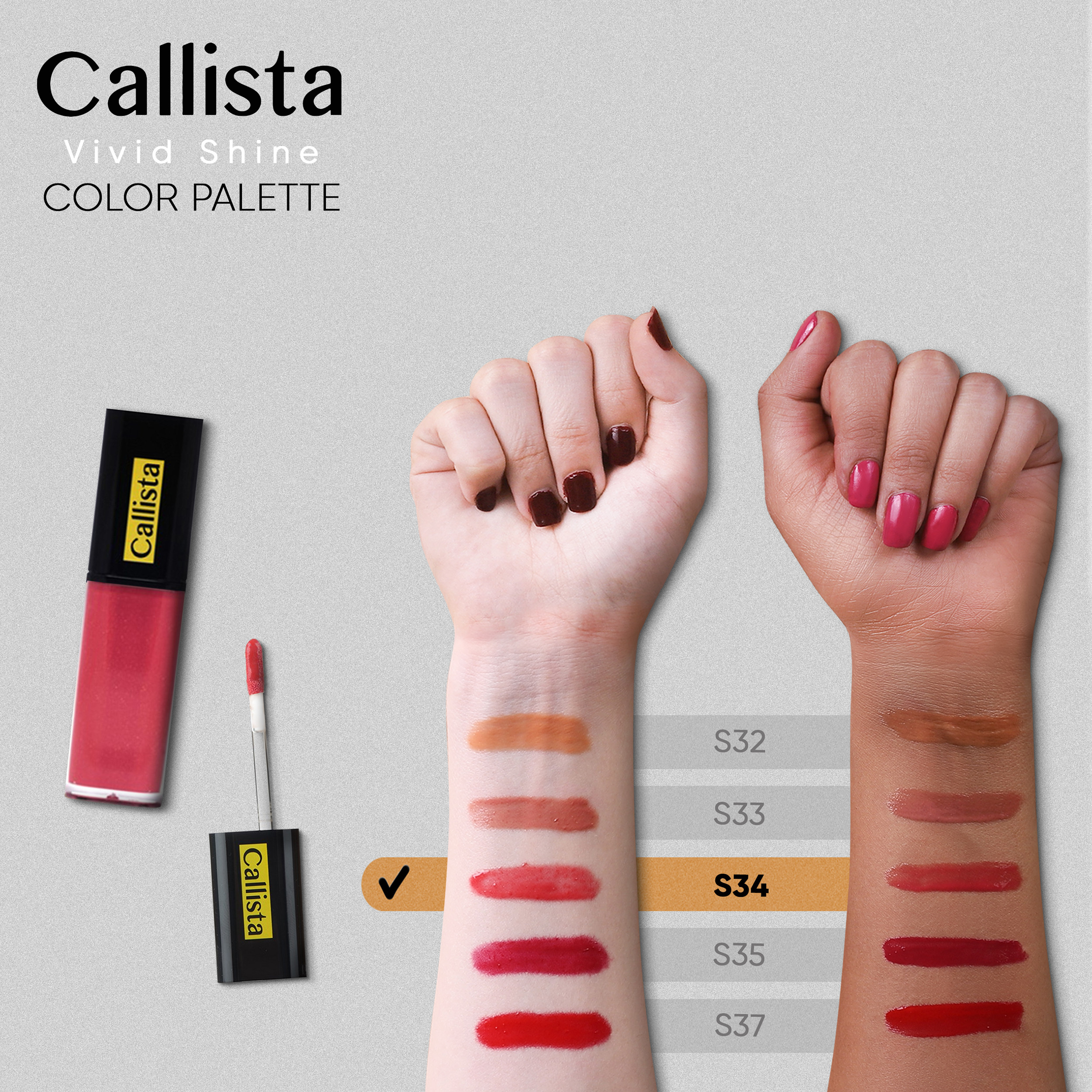 رژ لب مایع کالیستا مدل Vivid Shine شماره S34