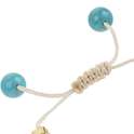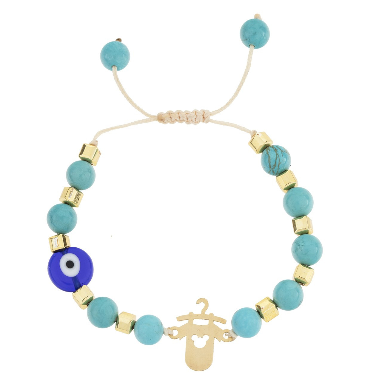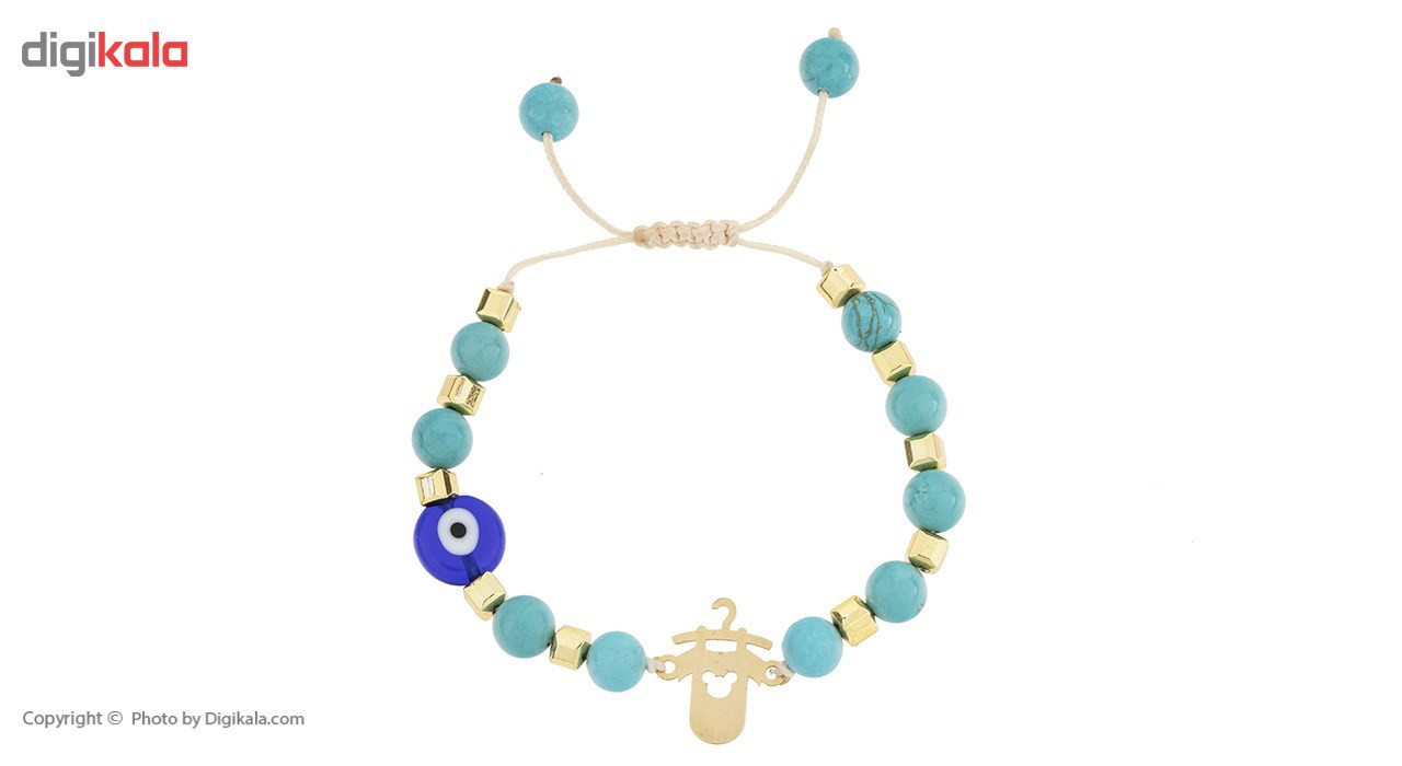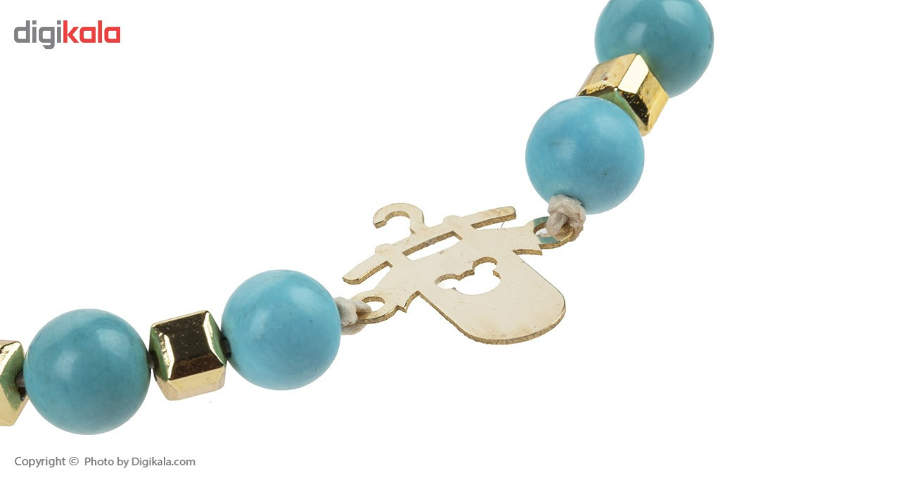 - مهرههای مکعبی طلایی به ابعاد 0.3 × 0.3 سانتیمتر و مهرههای فیروزهای به قطر 0.6 سانتیمتر و مهره چشم نظر به قطر 0.9 سانتیمتر هستند