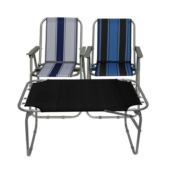 این مجموعه دارای دو عدد صندلی سفری تاشو و یک عدد میز تاشو میباشد
