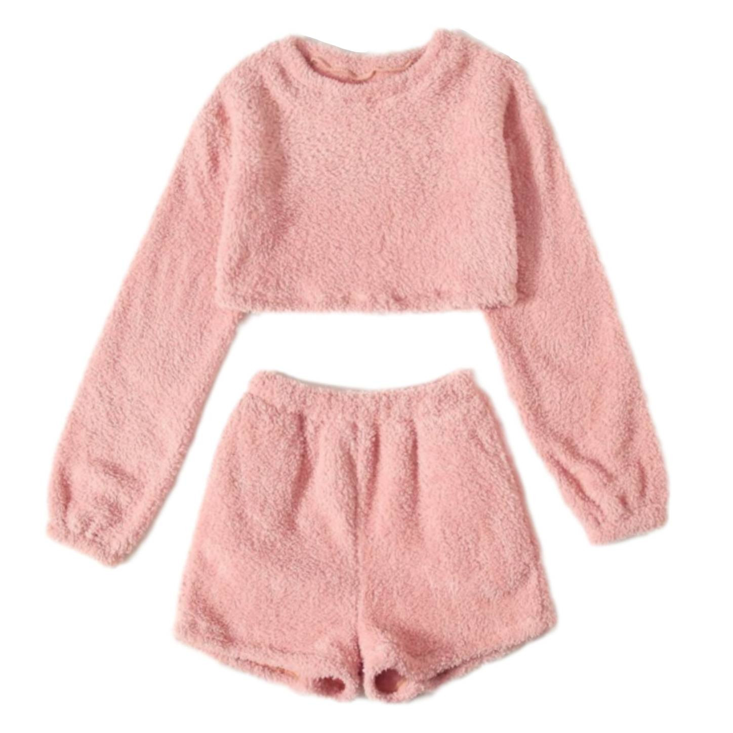 ست سویشرت و شلوارک زنانه مدل تدی گوسفندی