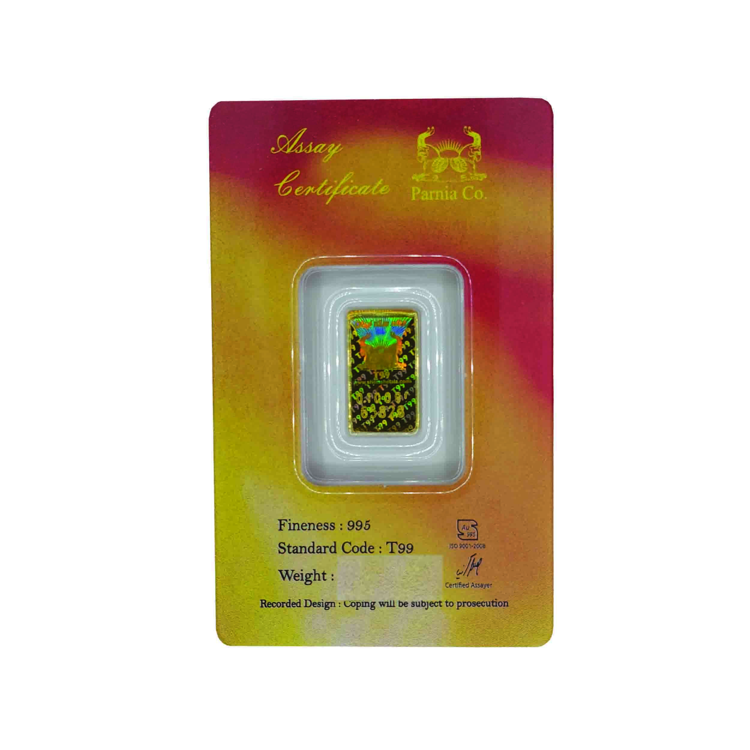 شمش طلا 24 عیار خانه سکه ایران مدل طاووس