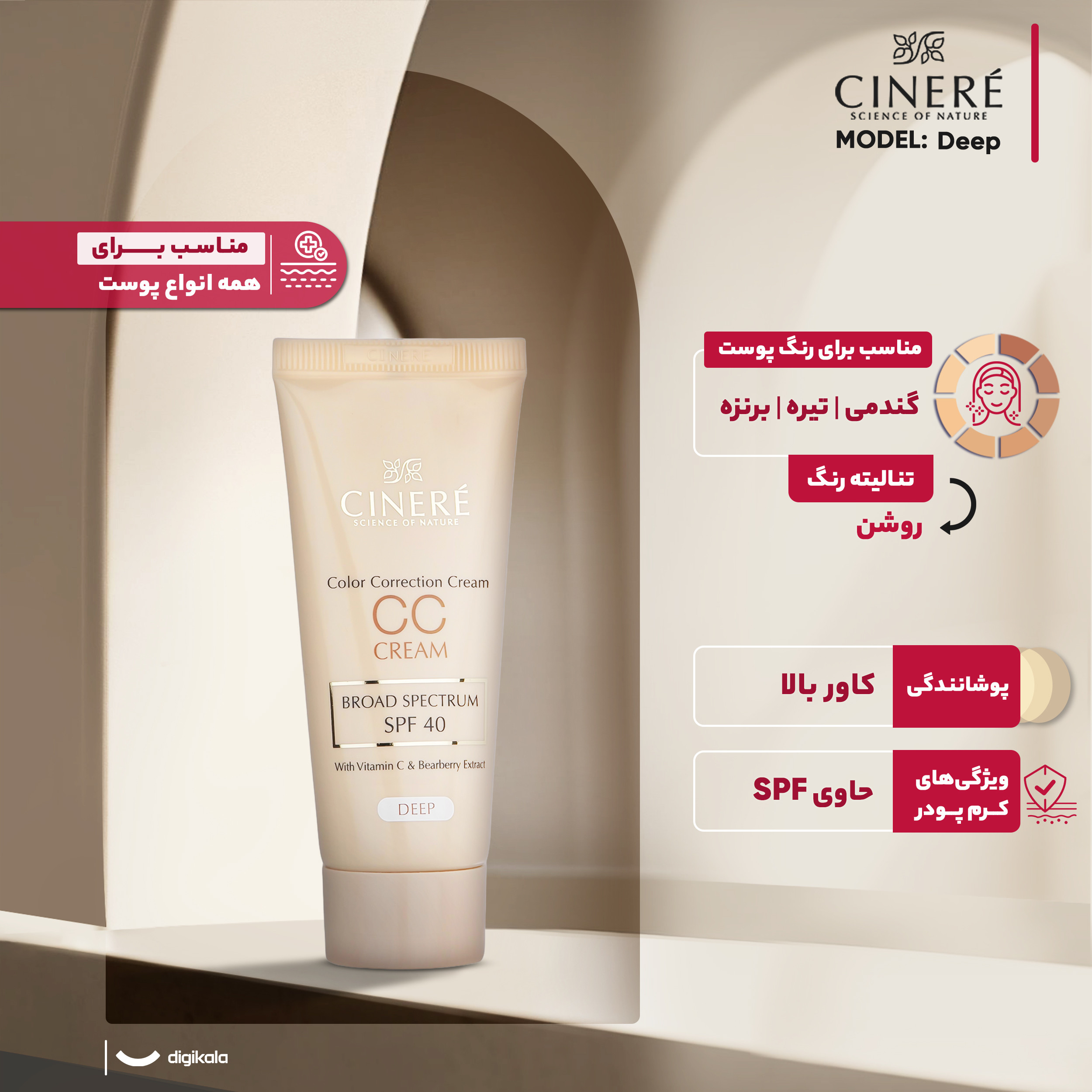 کرم پودر سینره مدل Deep حجم میلی لیتر