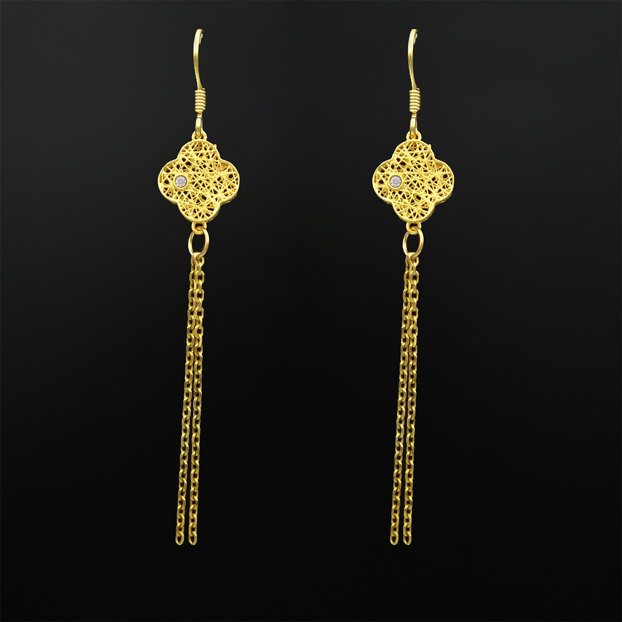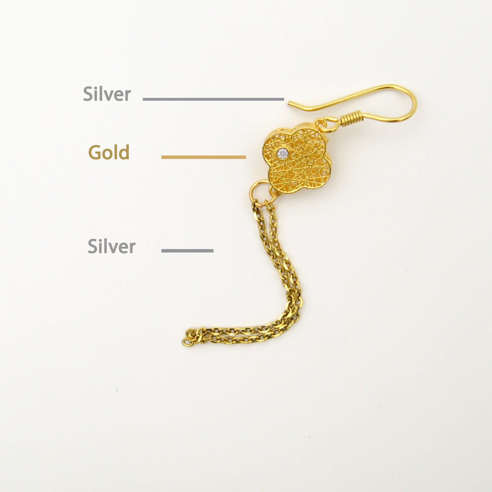 زنجیرهای آویزان و بازوری گوشواره از جنس نقره 925 عیار با آبکاری طلا
