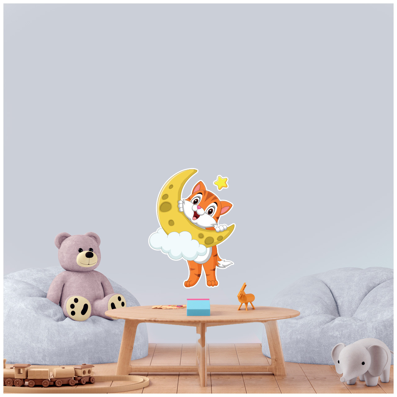 استیکر دیواری کودک مدل گربه و ماه کد 108