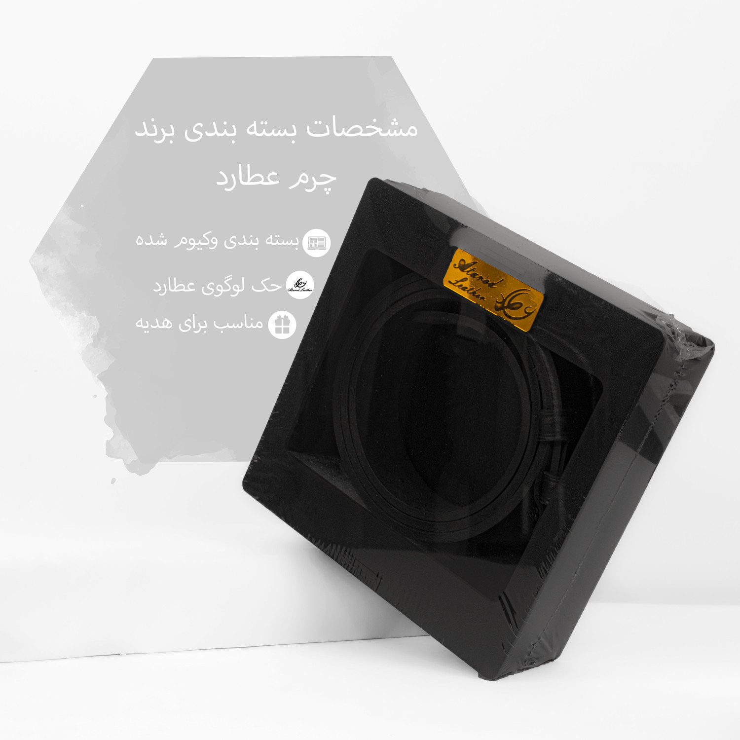 بسته بندی چوبی وکیوم شده با حک نام و لوگو برند رسمی چرم عطارد
