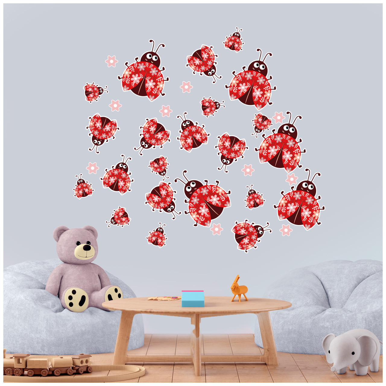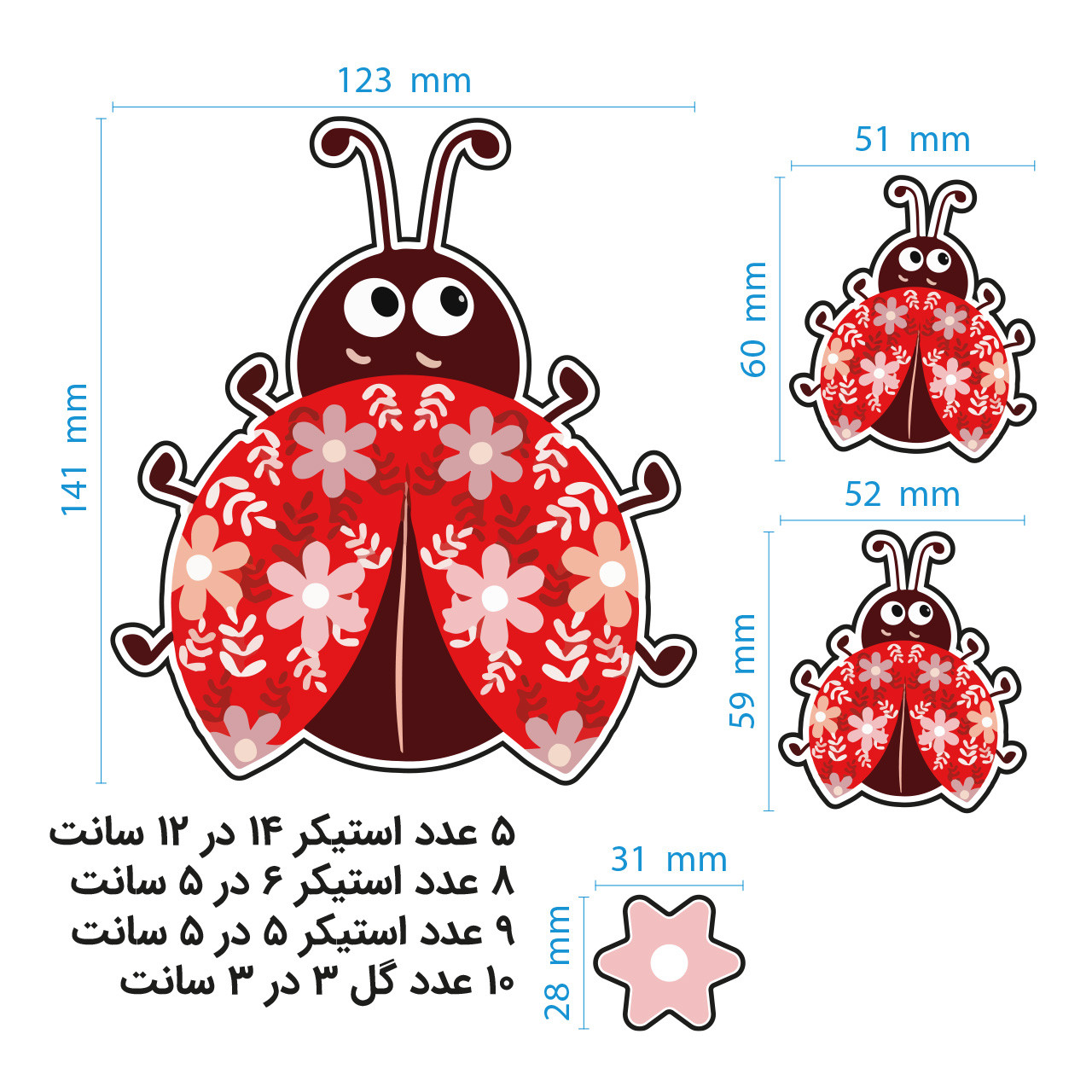 استیکر دیواری کودک مدل کفشدوزک‌های خوشحال کد 116 مجموعه 32 عددی