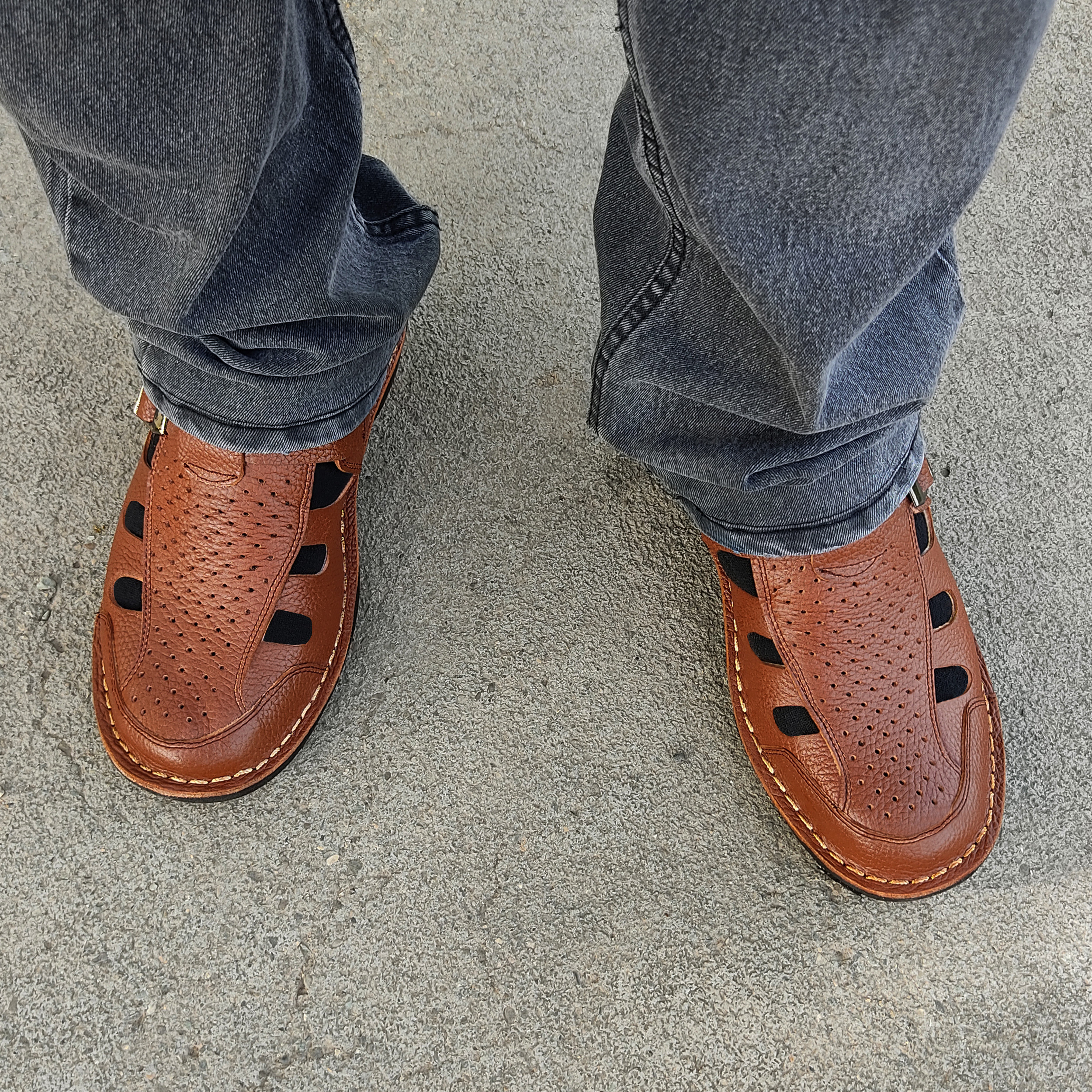 صندل مردانه چرم تبریز مدل ارتوپدیک