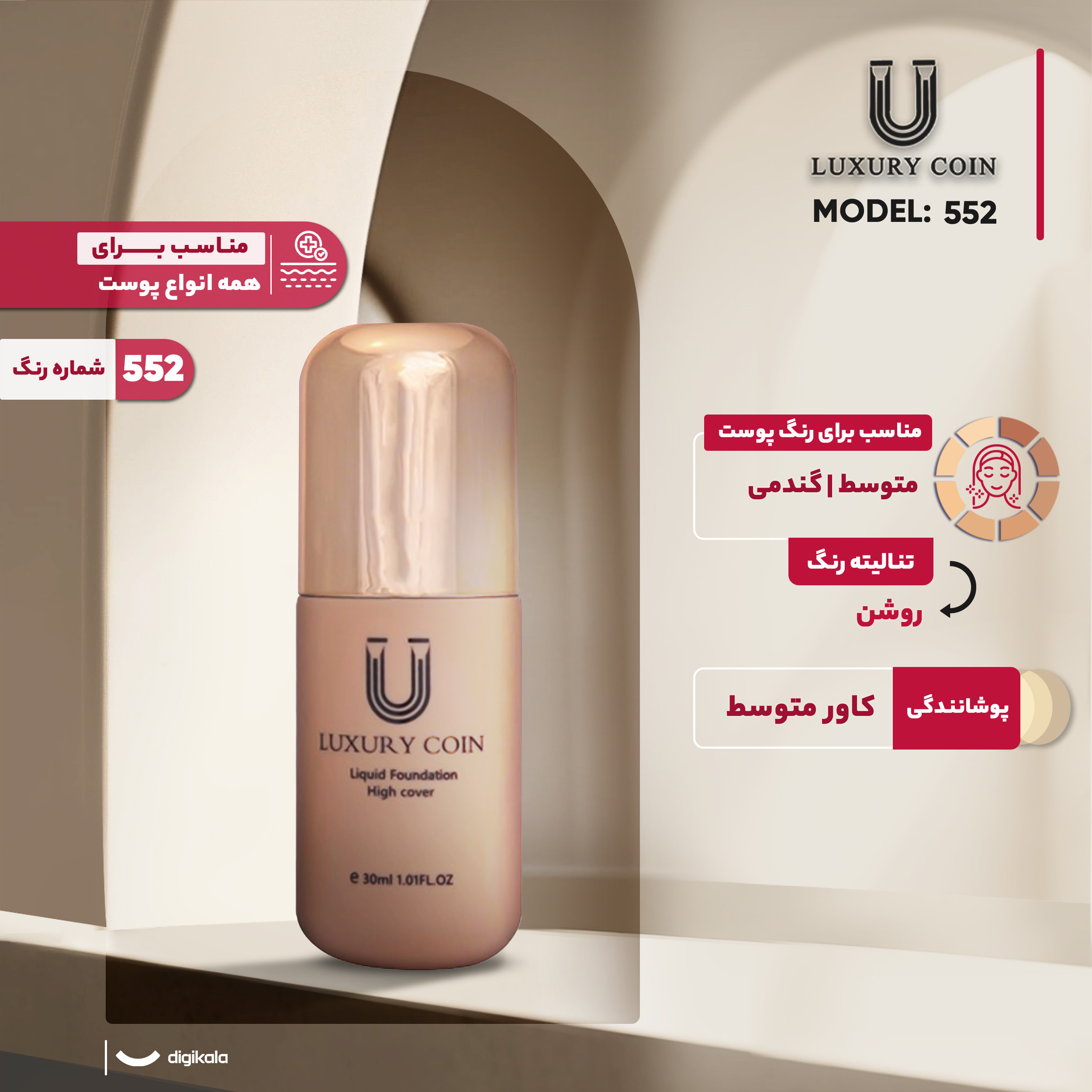 کرم پودر لاکچری کوین مدل 552 حجم 552 میلی لیتر