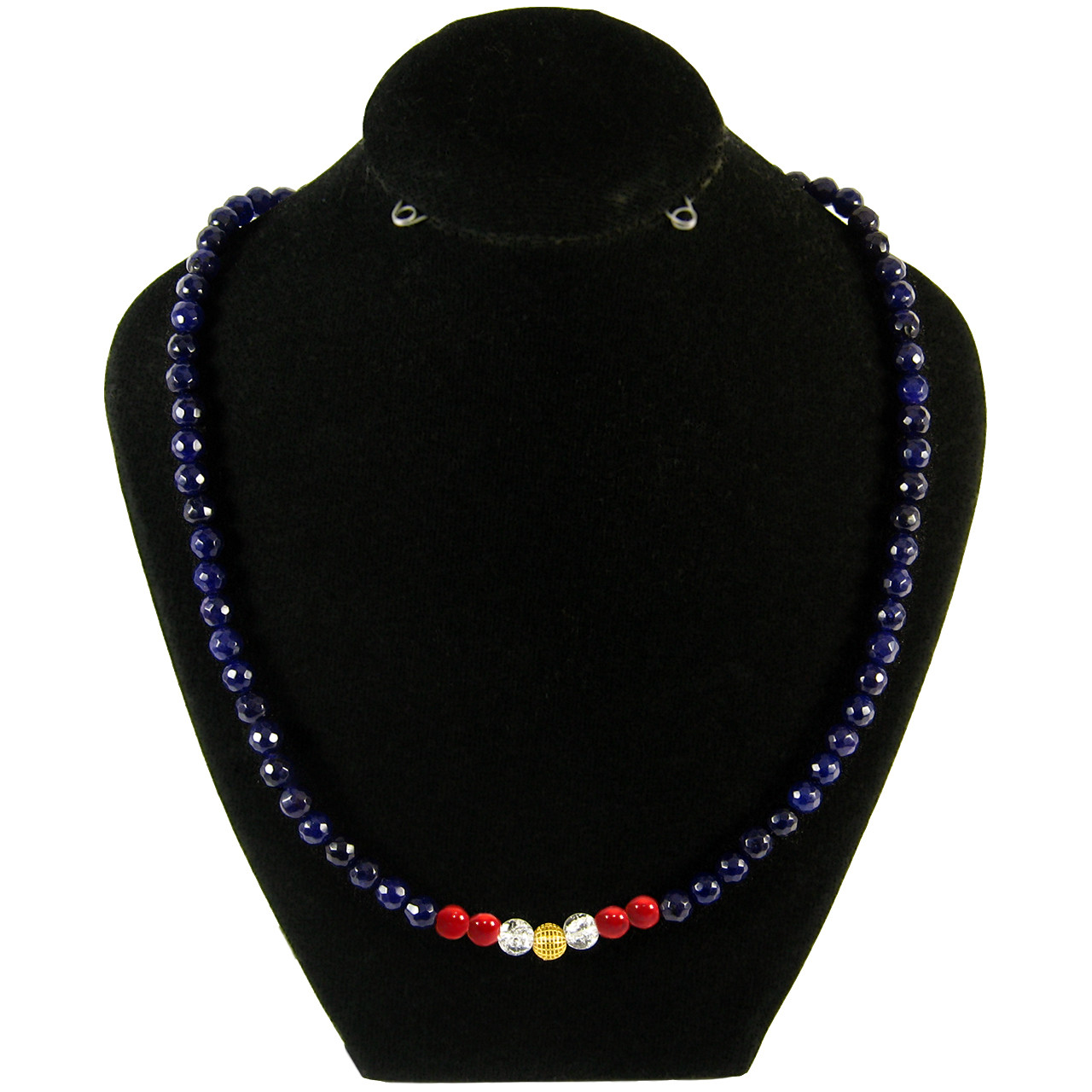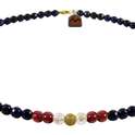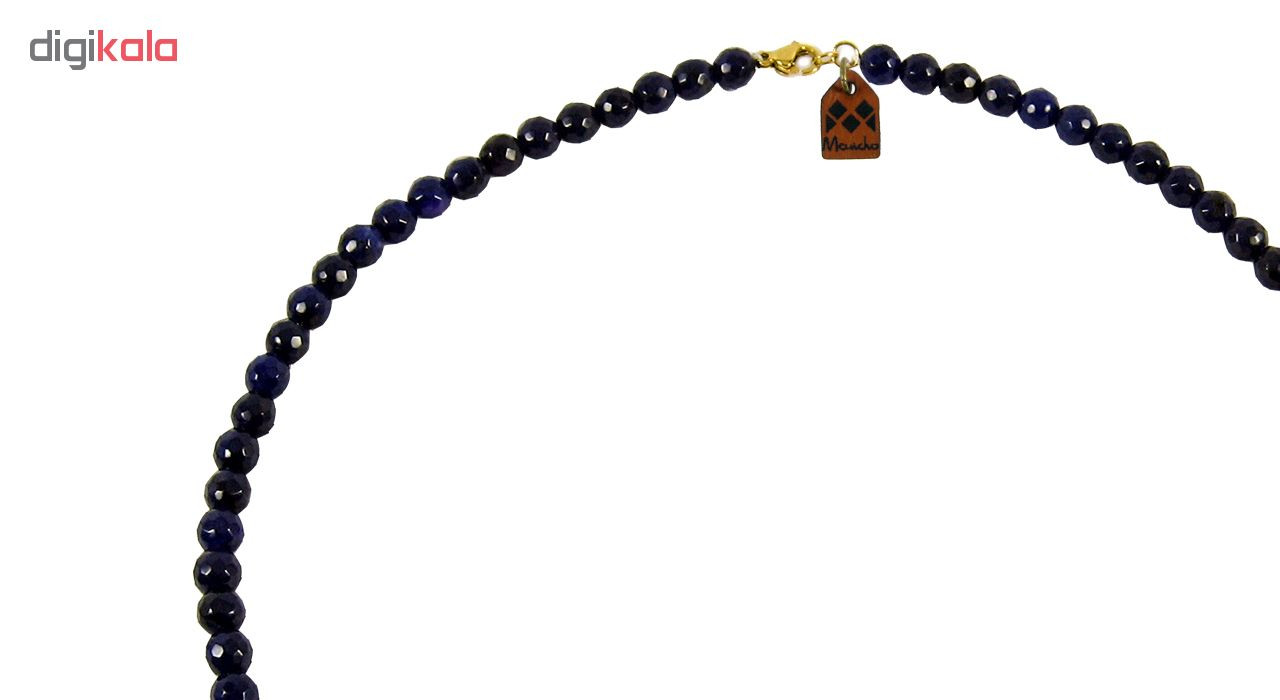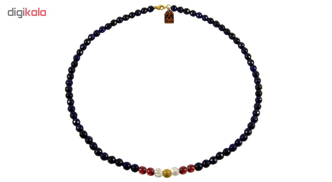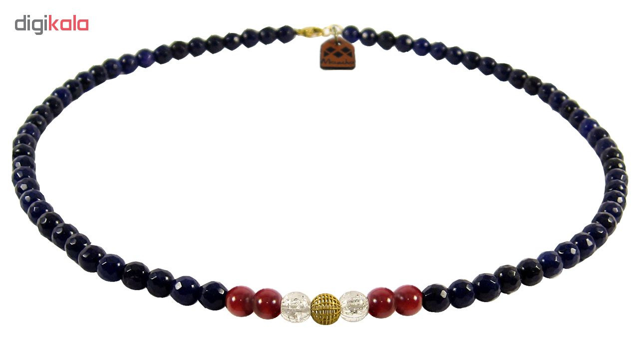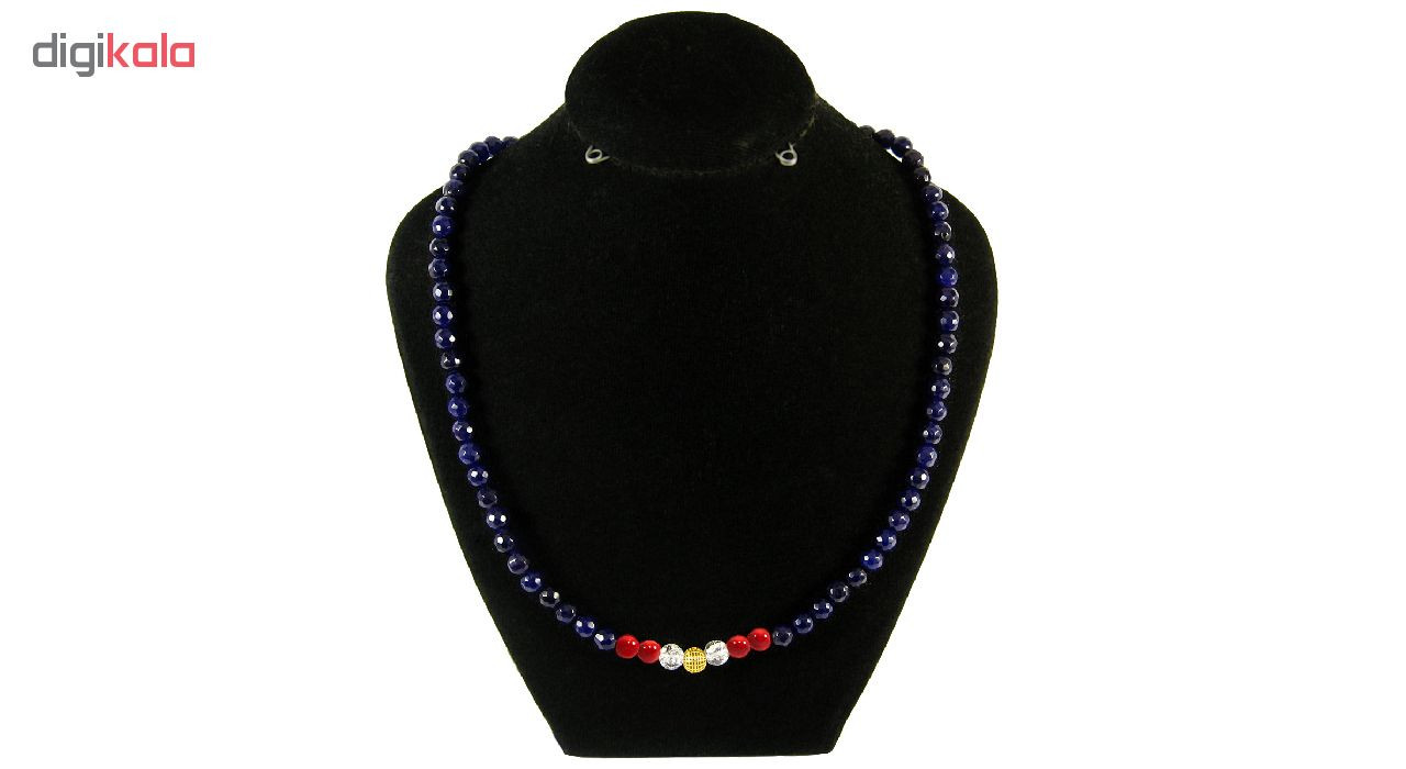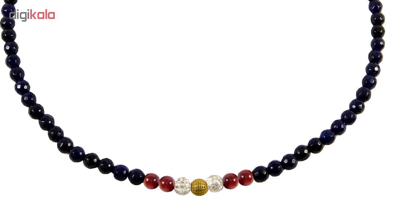 - سایر توضیحاتساخته شده از یک گوی طلای 18 عیار گرد توری به قطر 0.6 سانتیمتری در مرکز گردنبند به همراه مهره های سنگی عقیق، مرجان و اپال و قفل استیل با آبکاری طلایی.