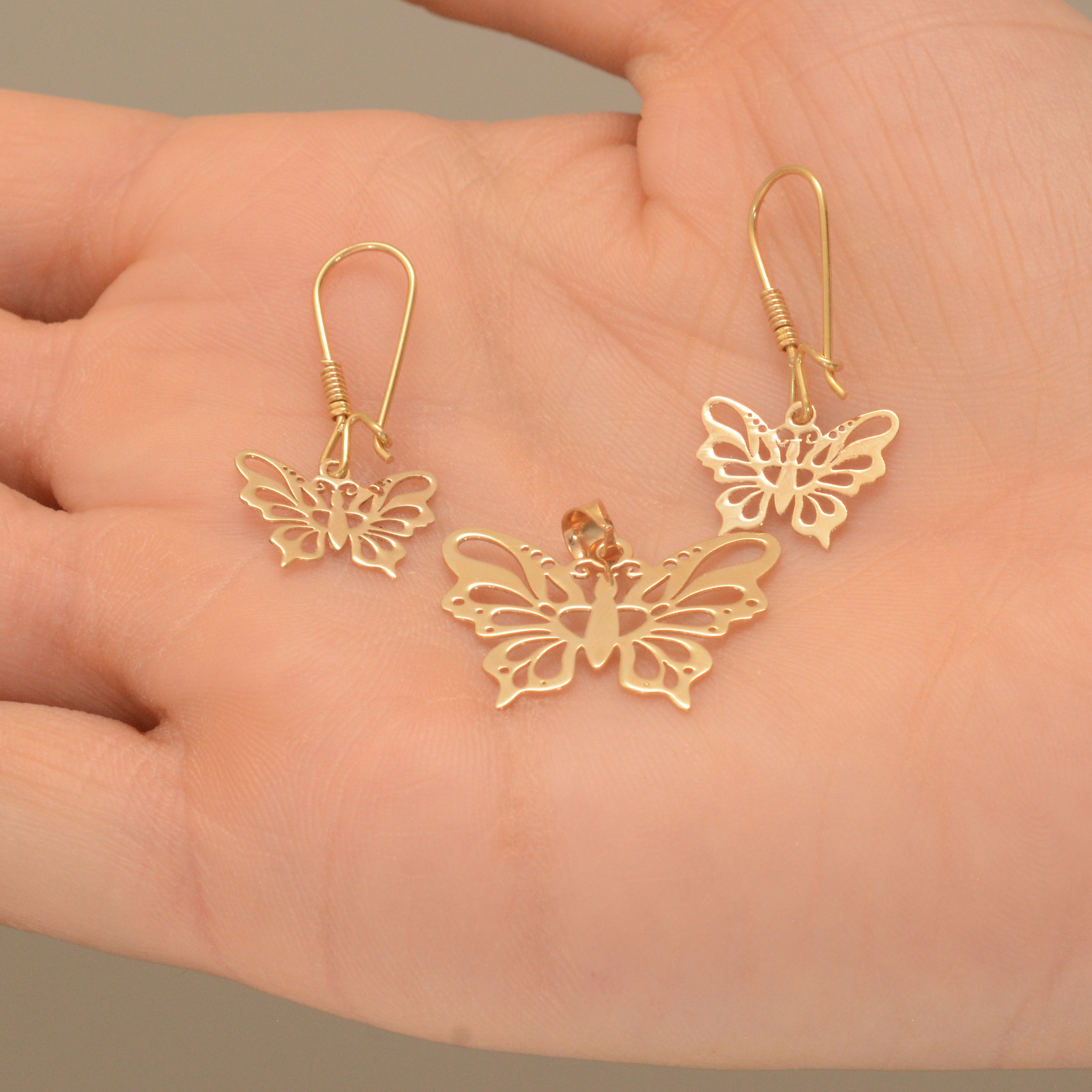 نیم ست طلا 18 عیار زنانه طلای مستجابی مدل پروانه کد 67157