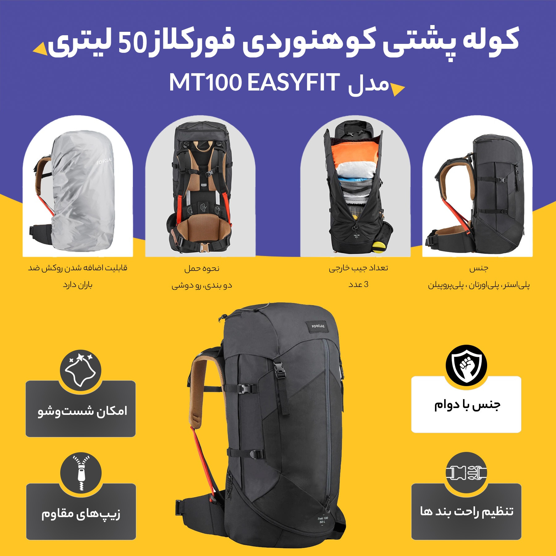 کوله پشتی کوهنوردی فورکلاز 50 لیتری مدل MT100 EASYFIT
