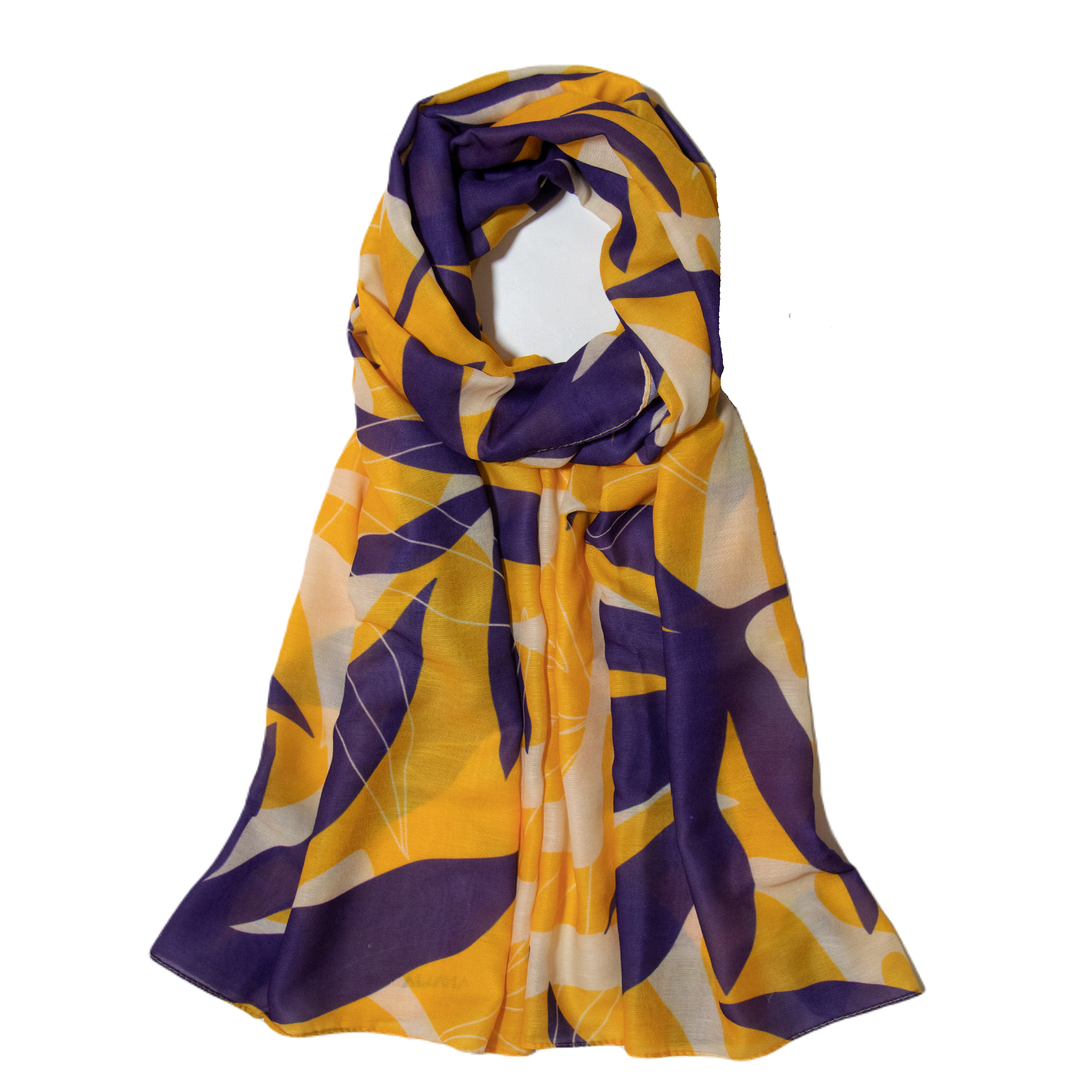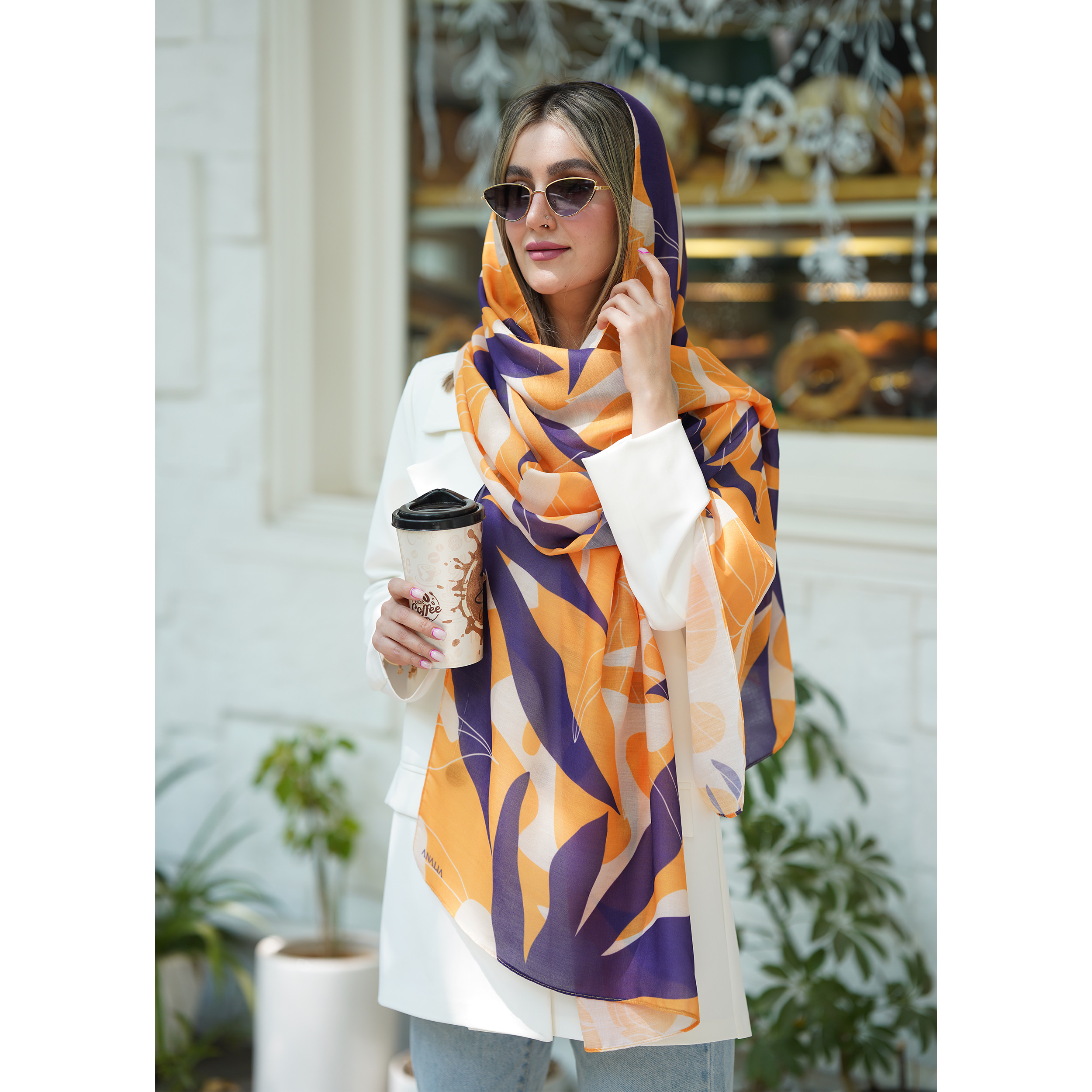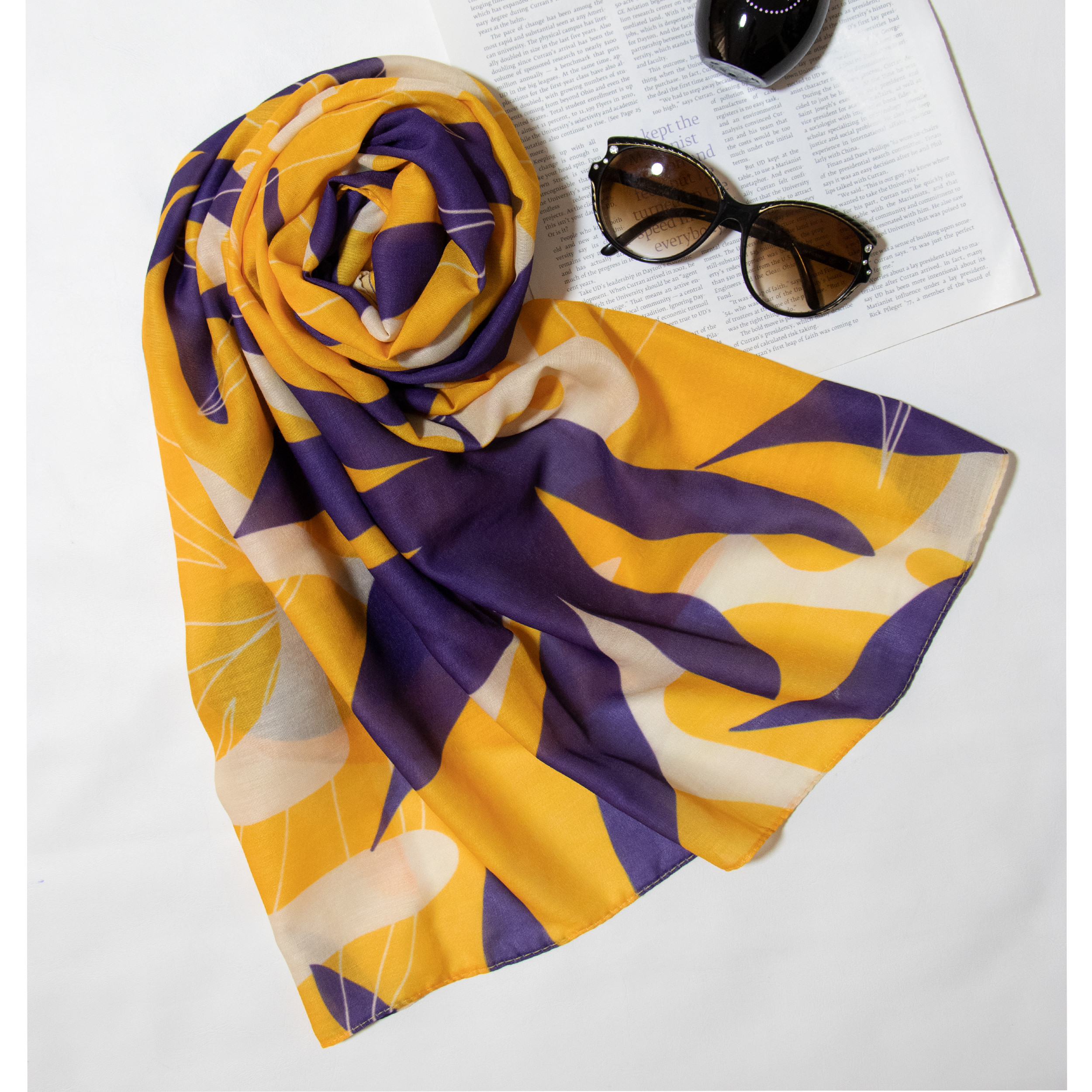 شال زنانه مدل نخ پنبه مزونی طرح برگ پاییزی کد ana-1470