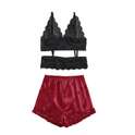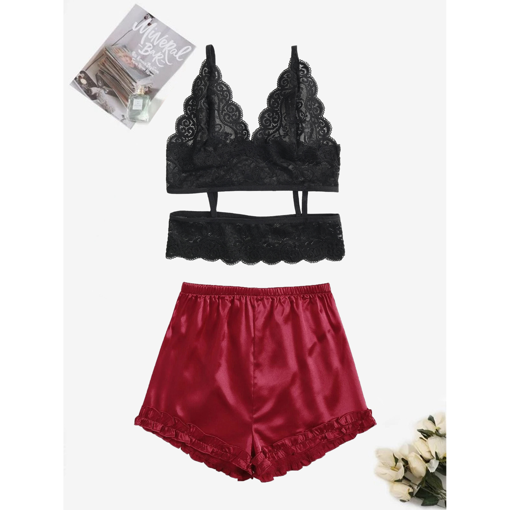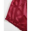 - جزئیات-لباس خواب زنانه تویین -تولید شده با مرغوب ترین ساتن که از نرمی و لطافت خاصی برخوردار است -ست لباس خواب زنانه شامل شلوارک ساتن و نیم تنه گیپور - دارای بند قابل تنظیم در نیم تنه.