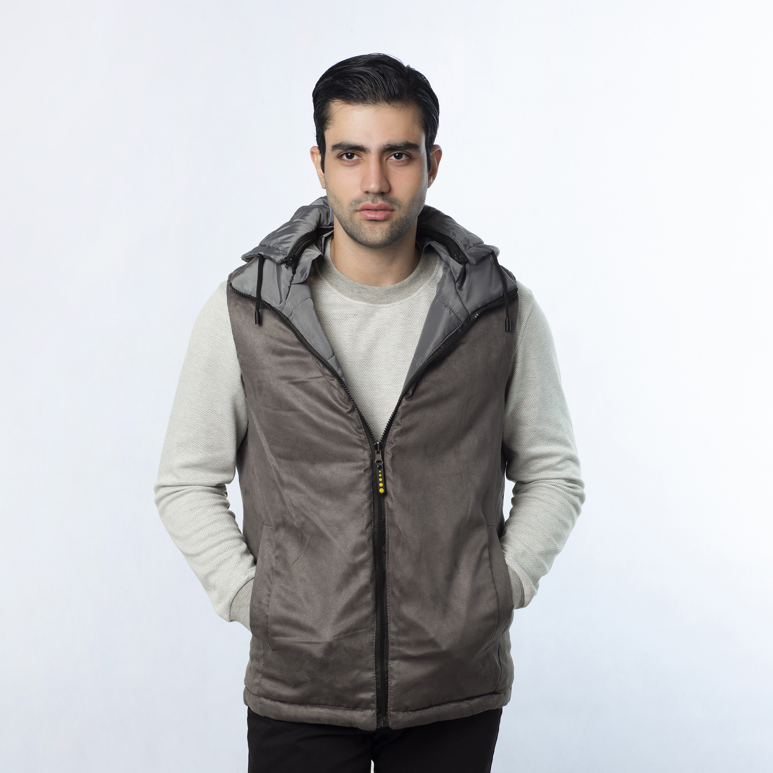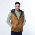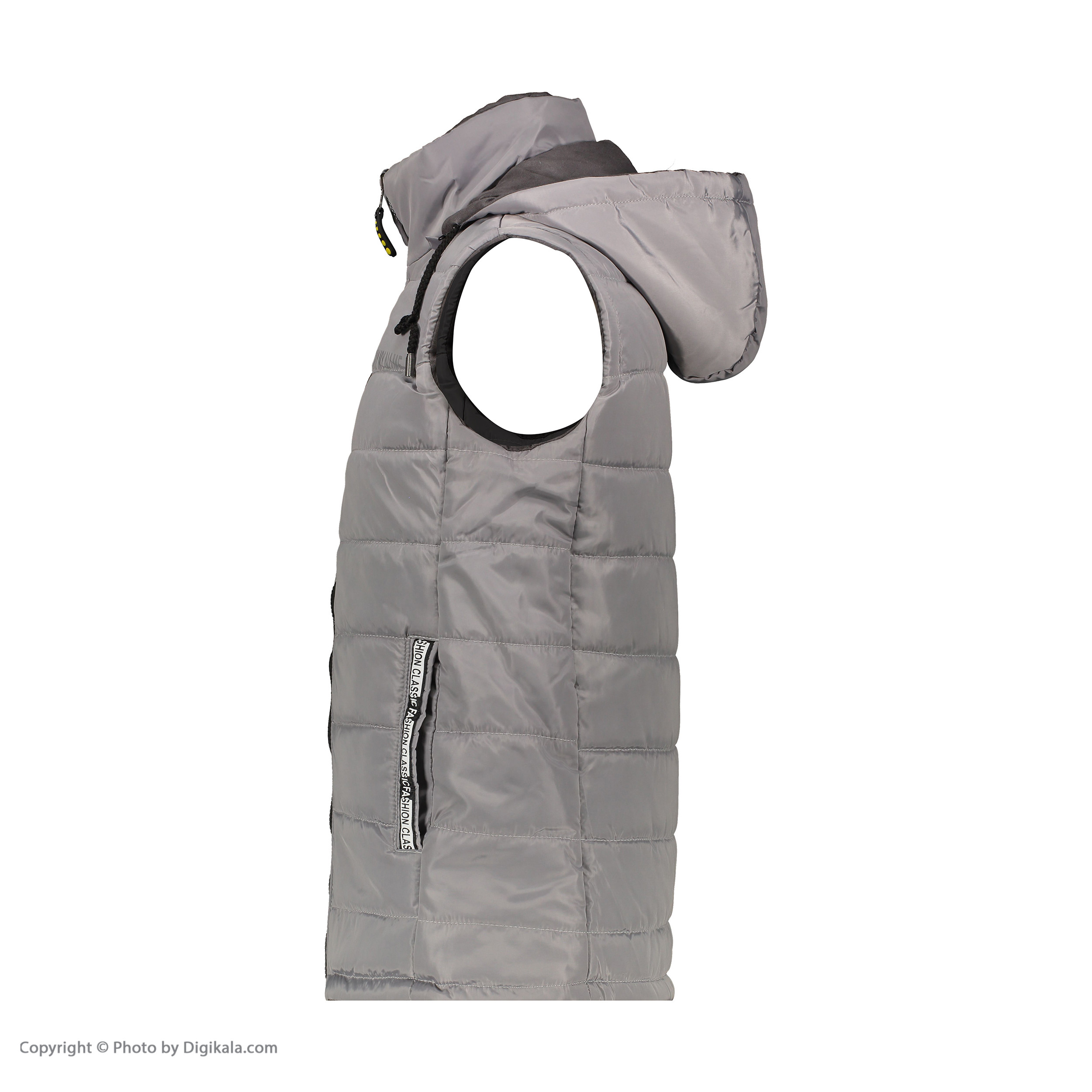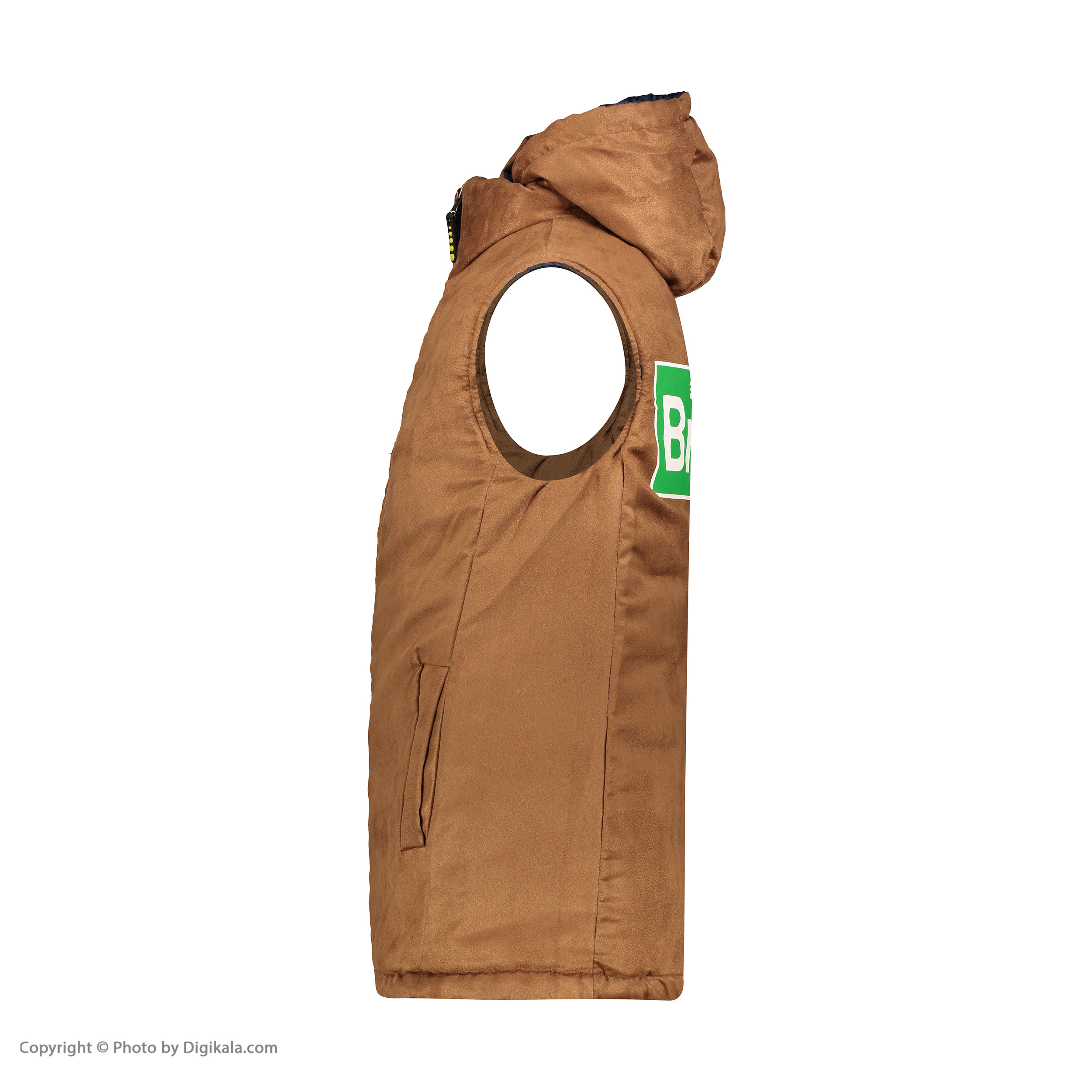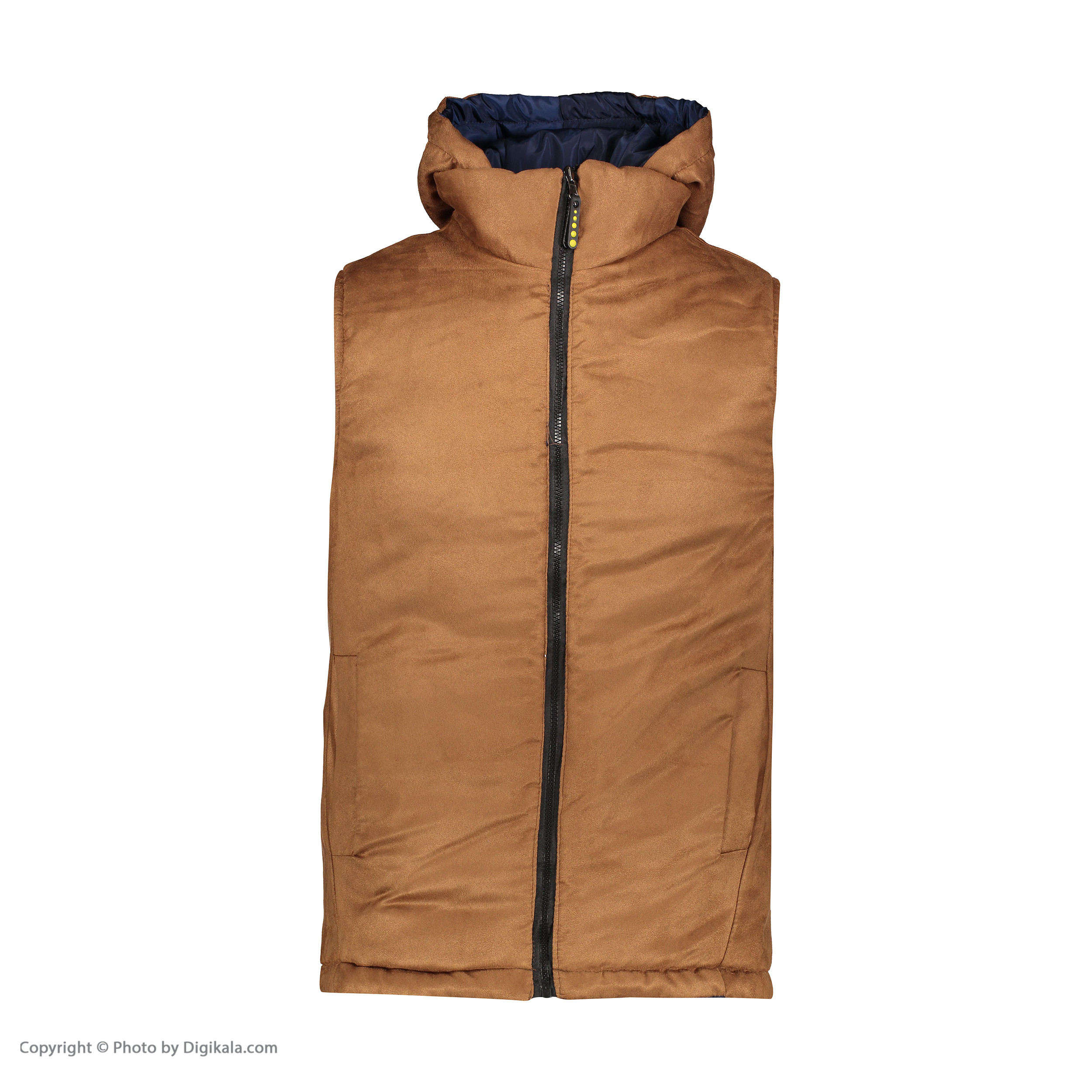 جلیقه پاییزه کلاه دار از 3 لایه پارچه تشکیل شده است شامل پارچه ضد اب و لایه داخلی پشم شیشه و لایه استری که جنس پشمی دارد. دارای دو جیب است. کلاه از تنه جدا میشود.