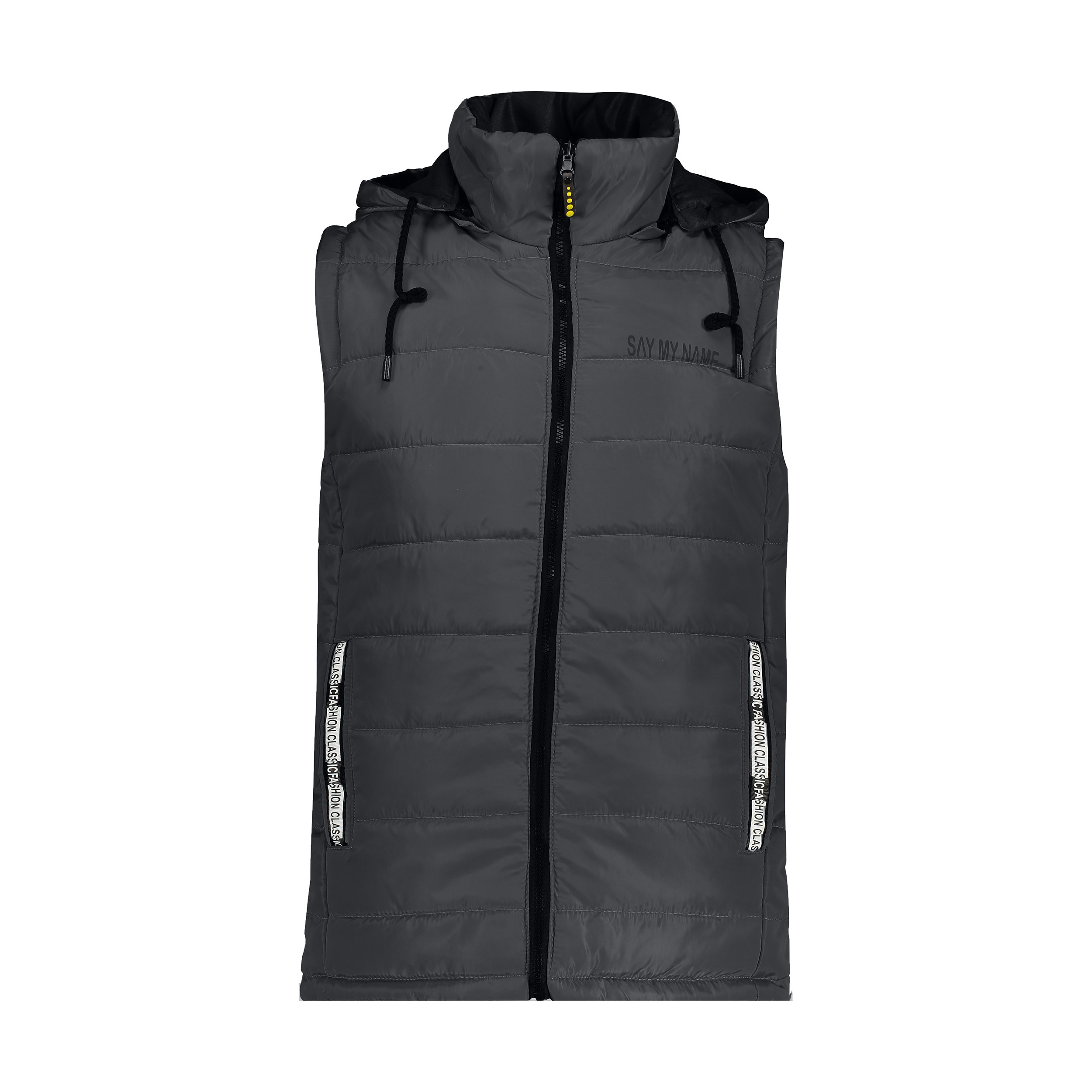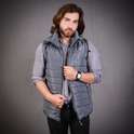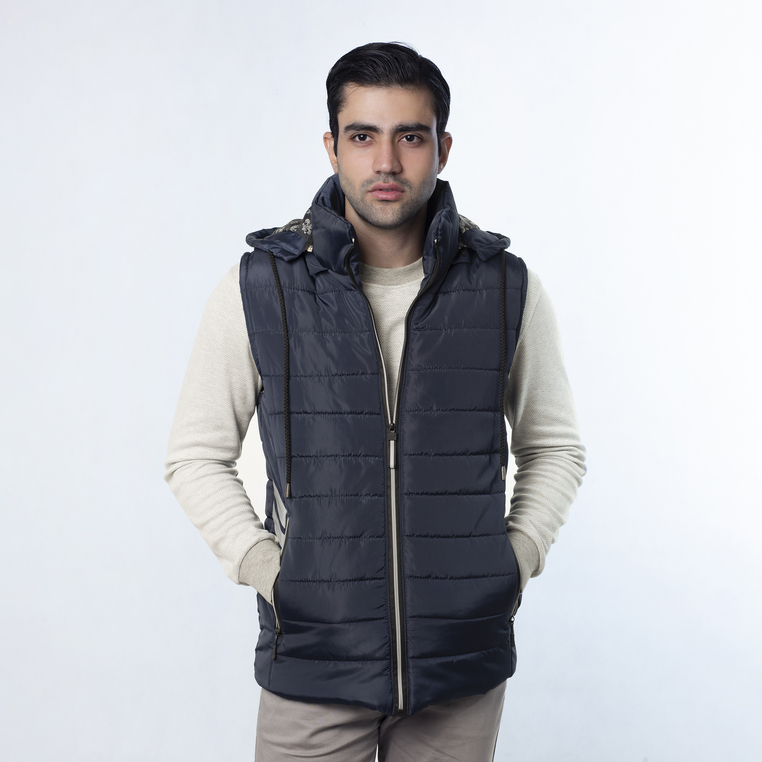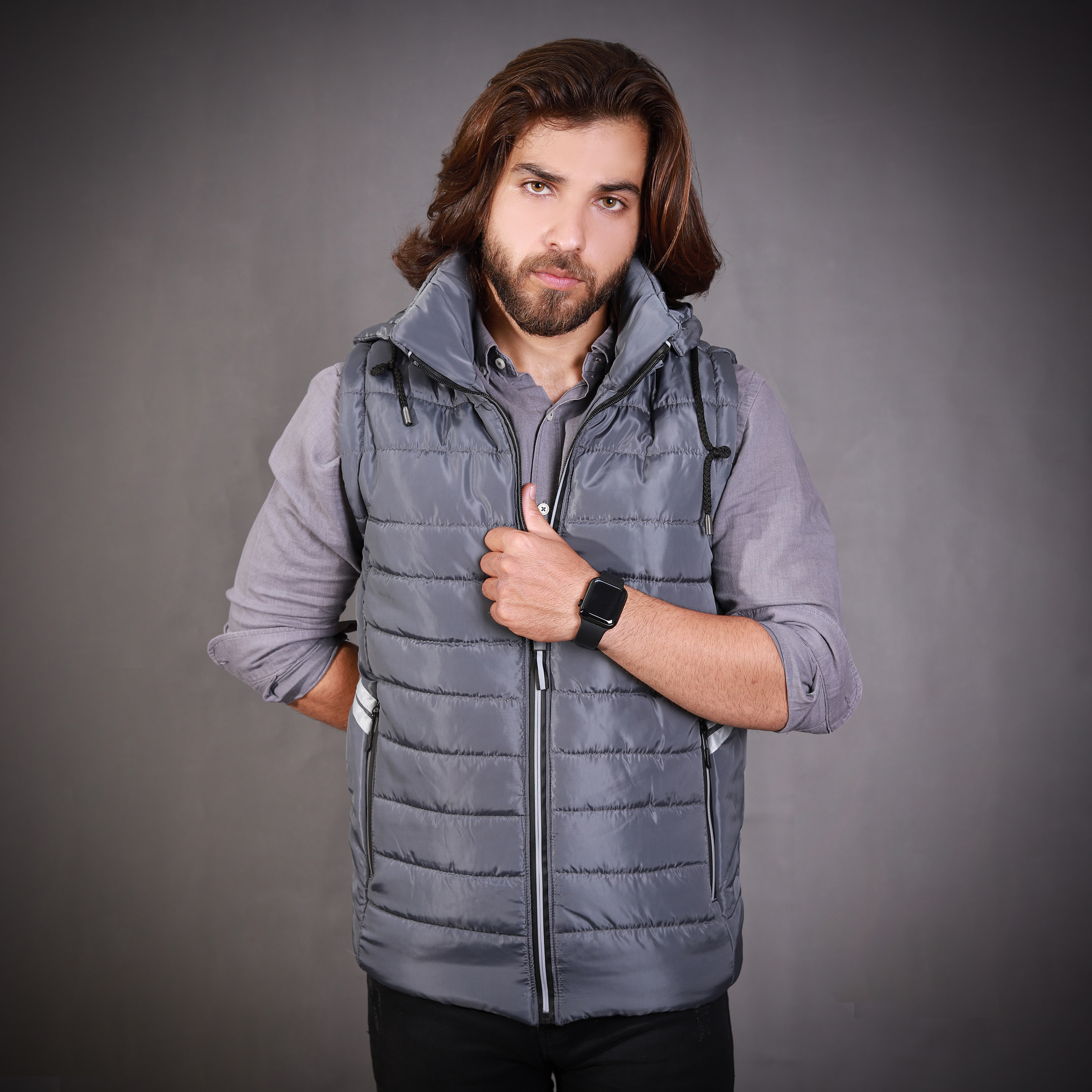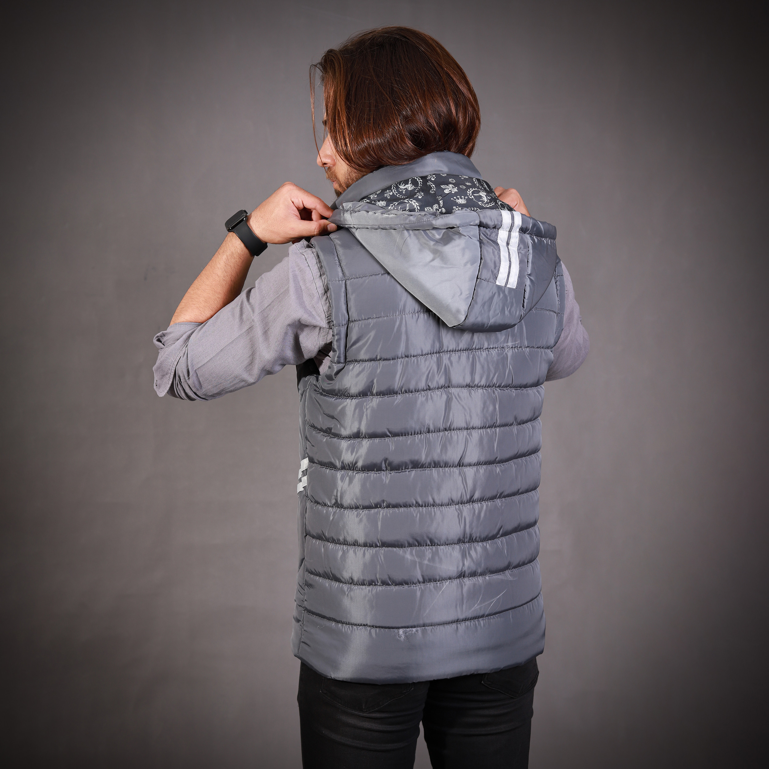 جلیقه پاییزه کلاه دار از 3 لایه پارچه تشکیل شده است شامل پارچه ضد اب و لایه داخلی پشم شیشه و لایه استری که جنس پشمی دارد. دارای دو جیب است. کلاه از تنه جدا میشود.