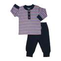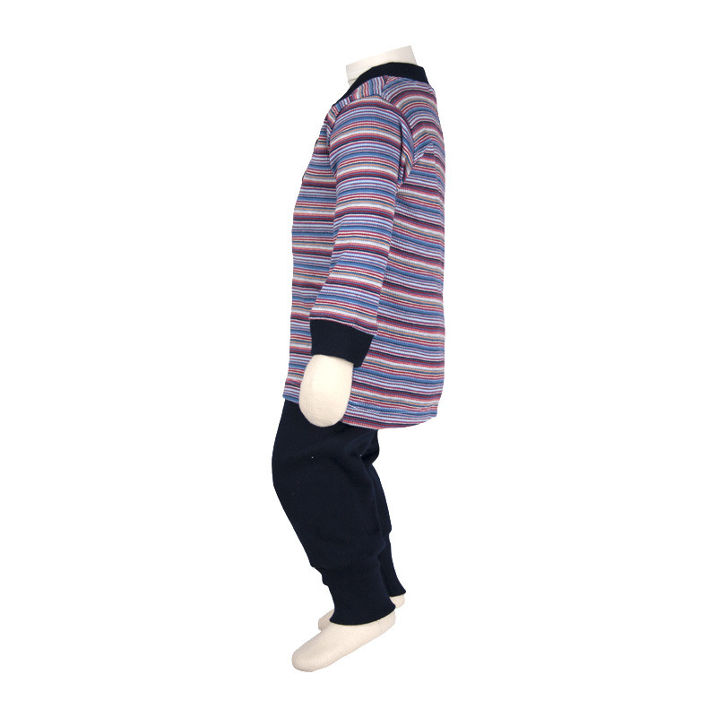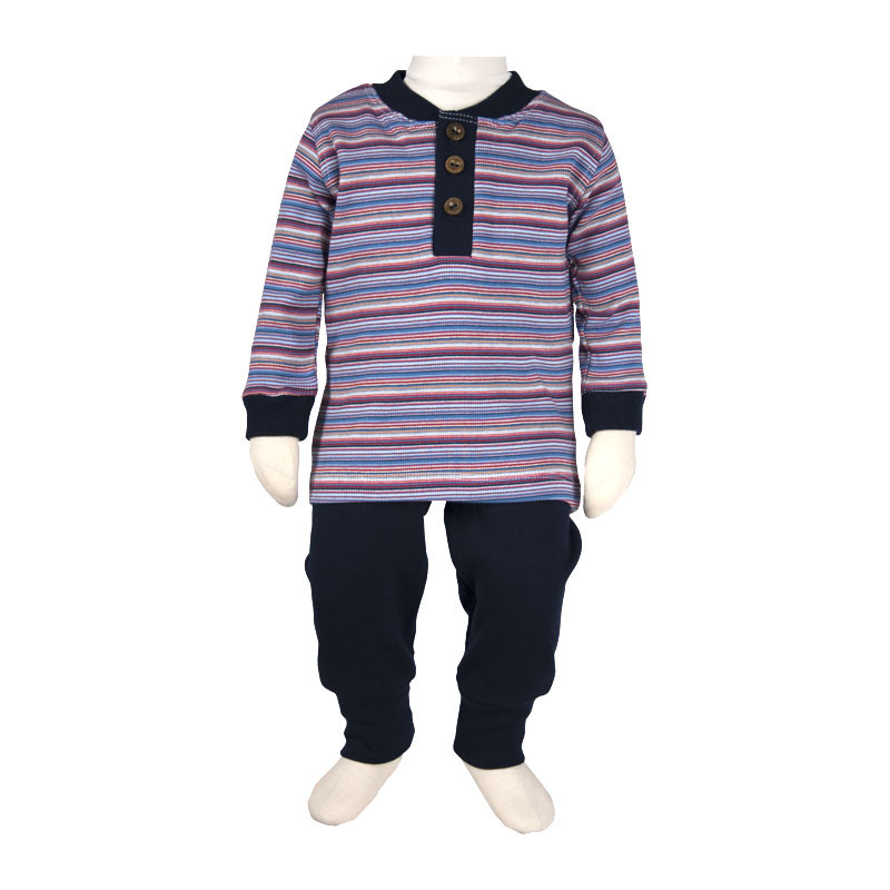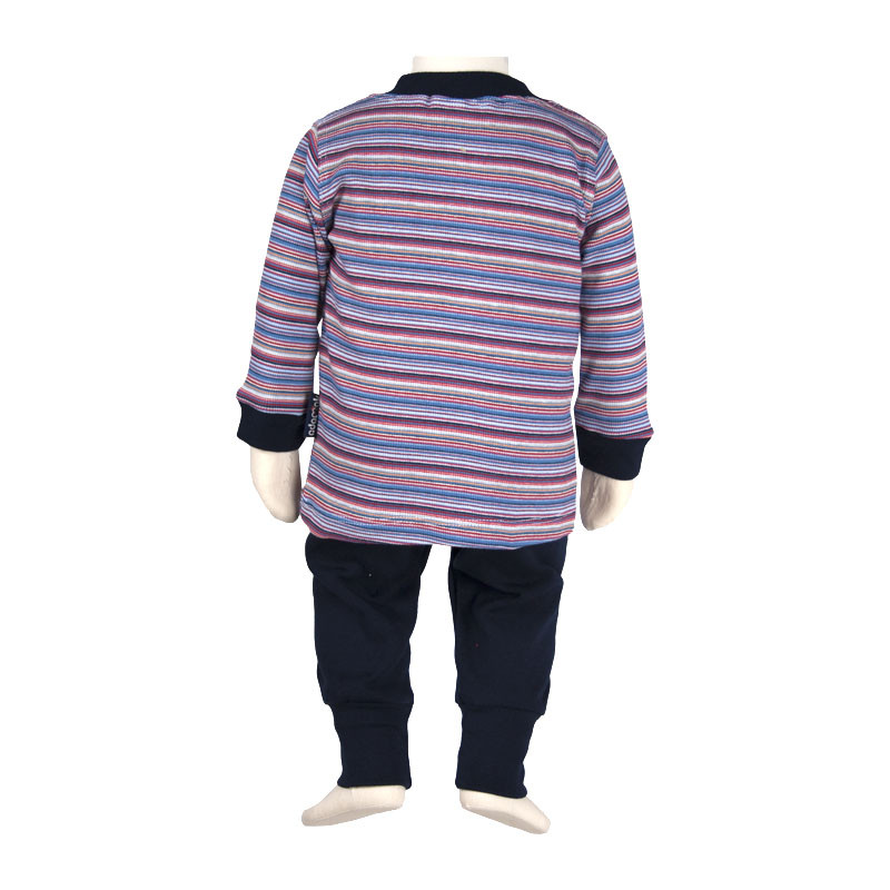 ست تی شرت آستین بلند و شلوار نوزادی آدمک مدل قاپکدار راه راه کد 111201 رنگ آبی